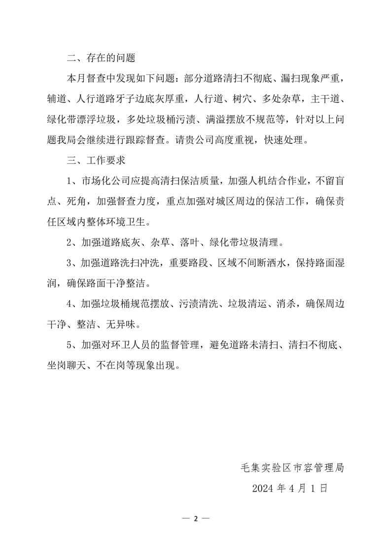 关于对环卫市场化作业公司作业质量检查情况的通报