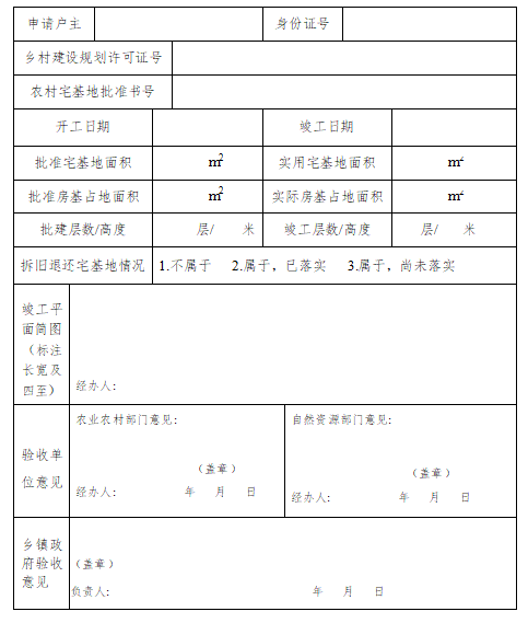 7.《农村宅基地和建房(规划许可)验收意见表》