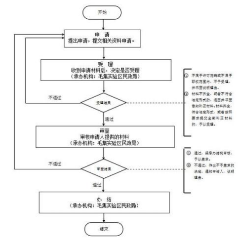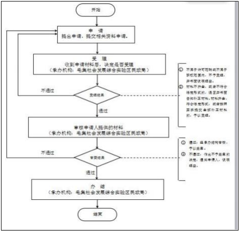 办理时间:工作 日 8:30-12:00 2:00-5:00 实施主体:毛集社会发展综合实验区民政局