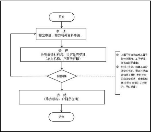 1. 申请: 申请人向村级提交申请材料,村级对申请材料转报 乡镇