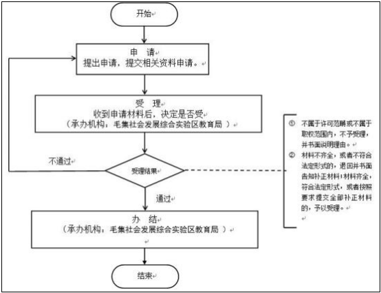 办理时间:工作 日 8:30-12:00 2:00-5:00 实施主体:淮南市毛集社会发展综合实验区教育局