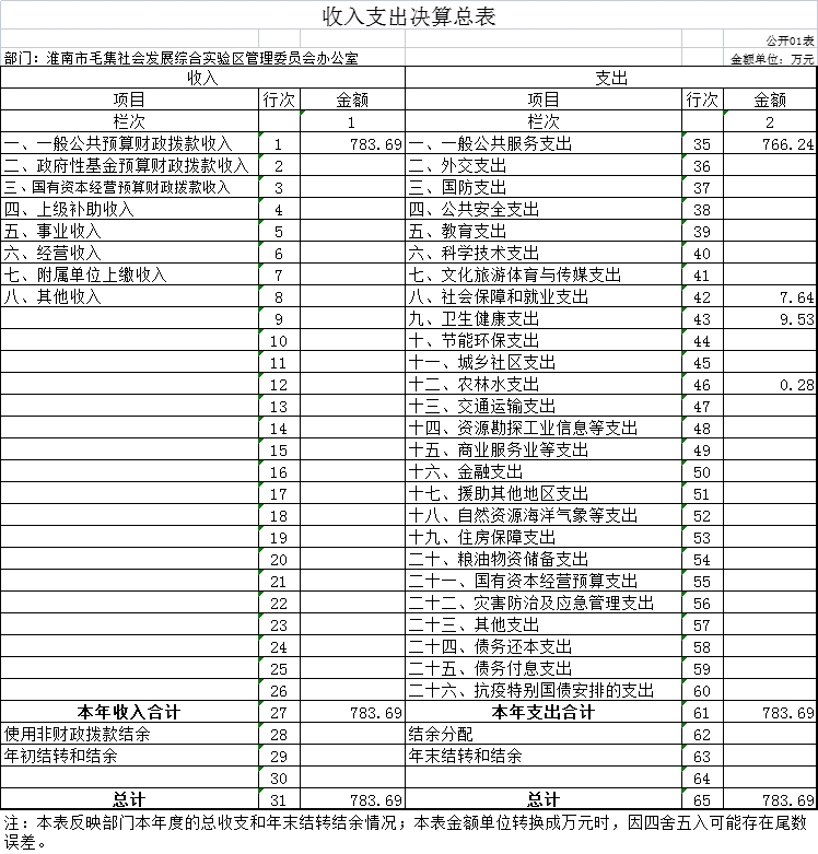 一、收入支出决算总表