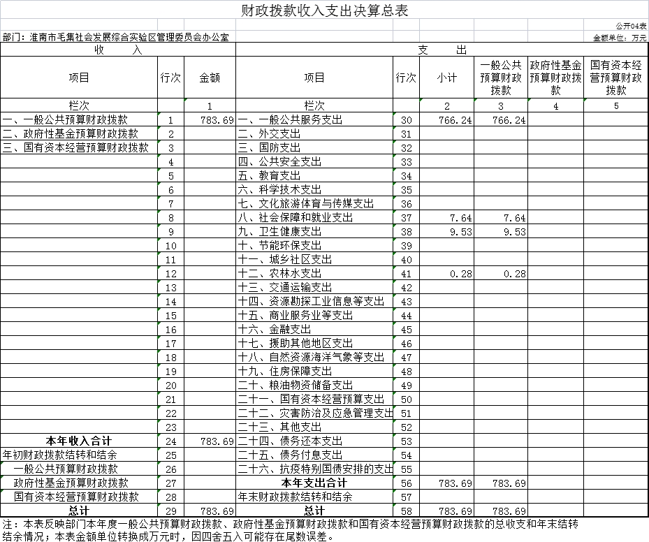 第二部分 毛集实验区管委办公室2021年部门决算表