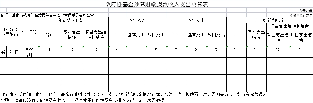 七、政府性基金预算财政拨款收入支出决算表