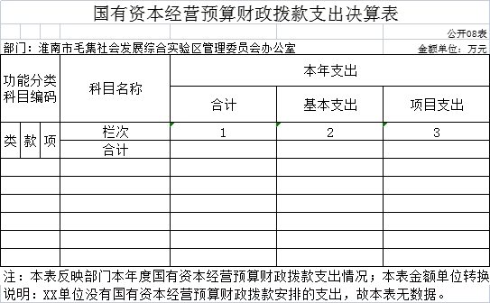 区管委办公室没有国有资本经营预算财政拨款收入,也没有使用国有资本经营预算财政拨款安排的支出。