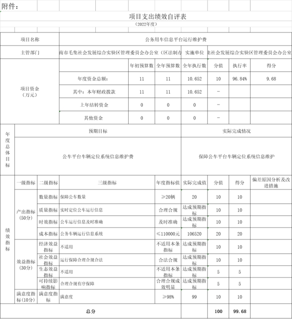 附件:2022年度项目支出绩效自评表及公务用车信息平台运行维护费项目绩效评价报告。