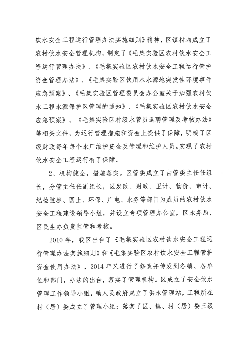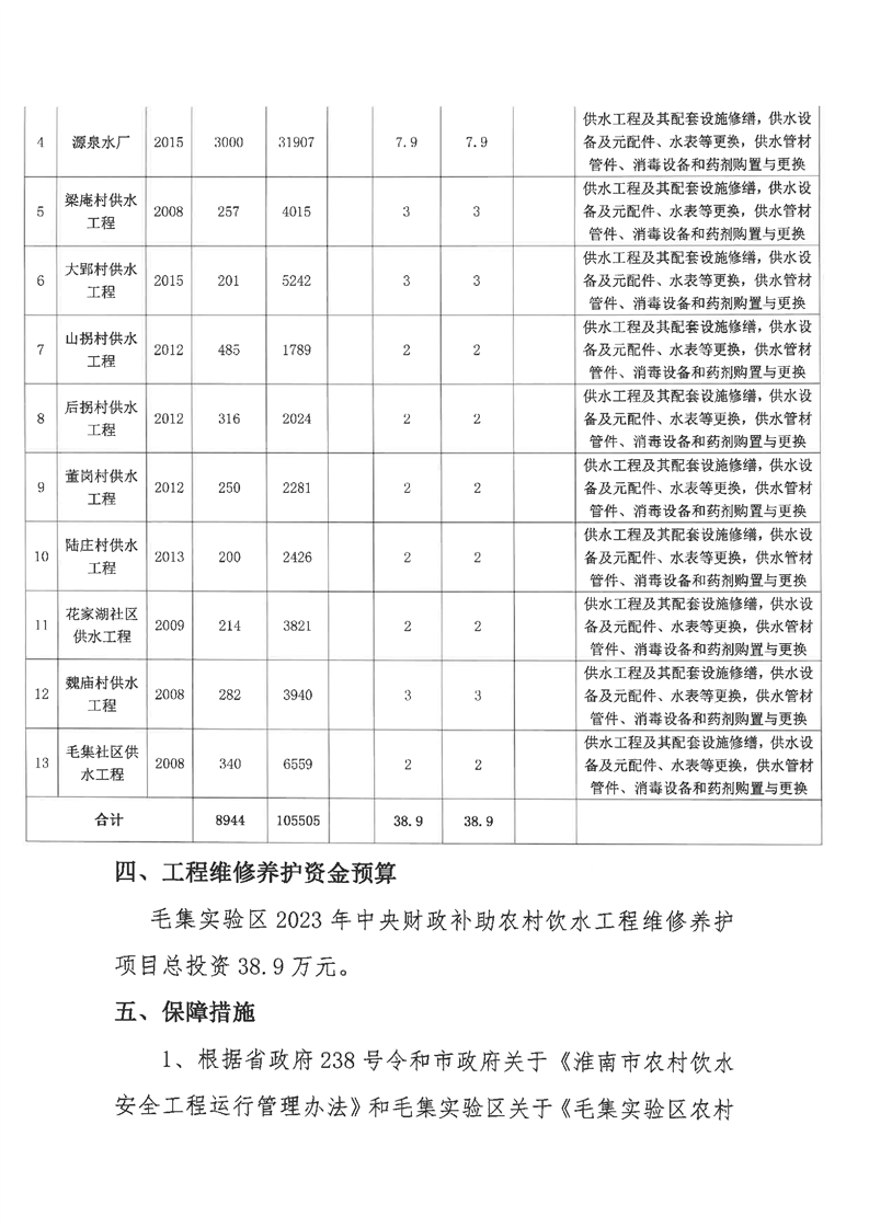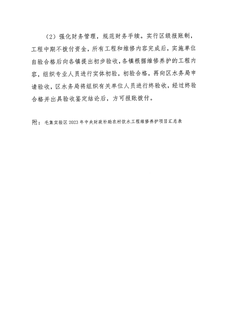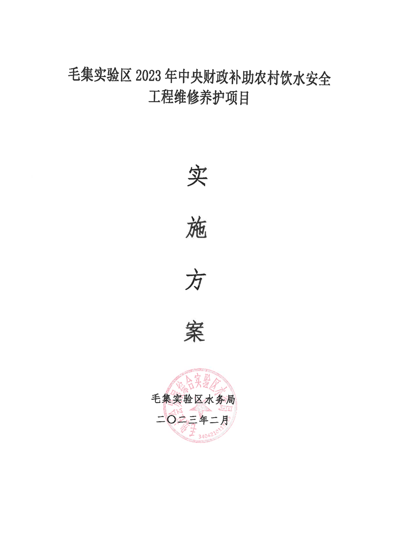 关于印发《毛集实验区2023年中央财政补助农村饮水工程维修养护项目实施方案》的通知