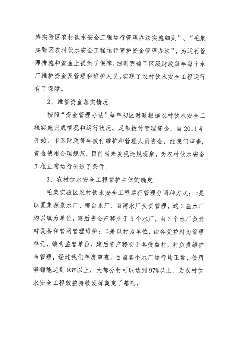 农村饮水安全资金管理和使用情况