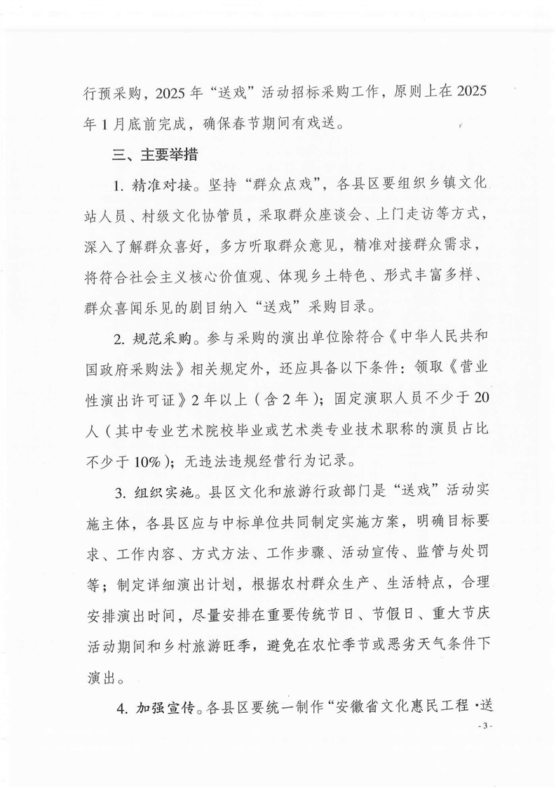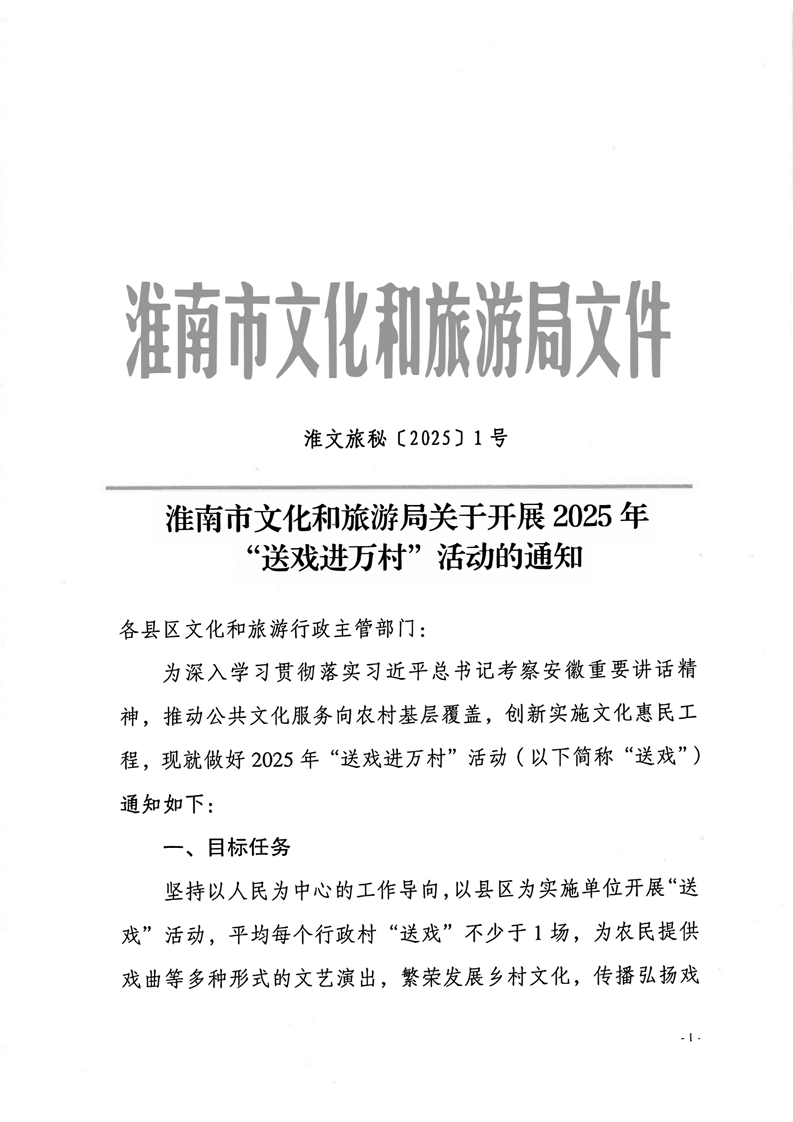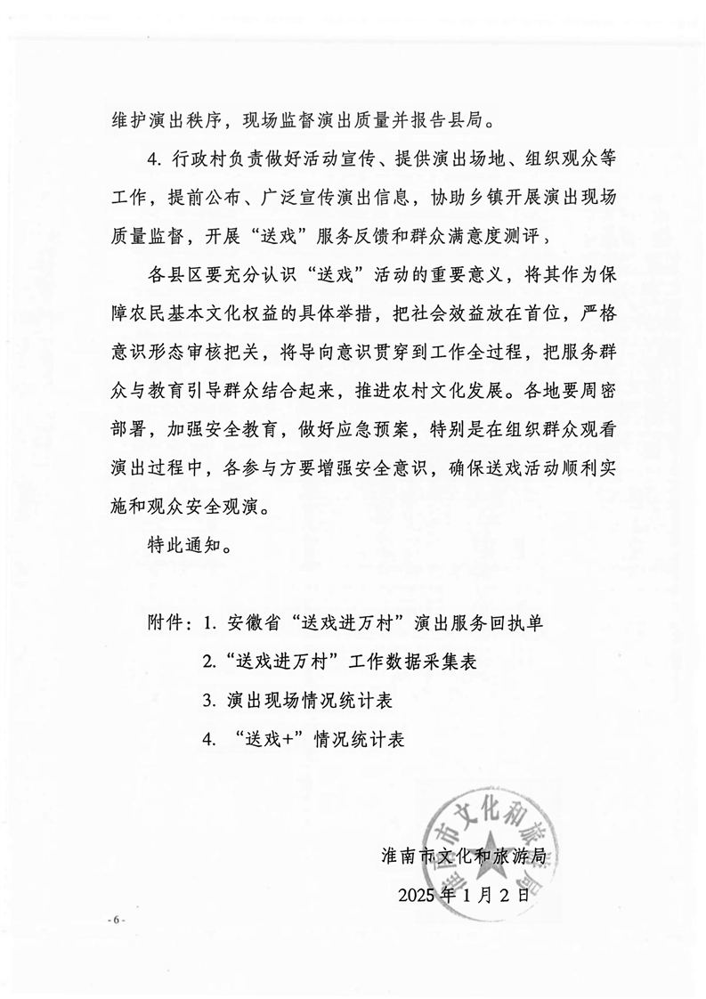 淮南市文化和旅游局关于开展2025年“送戏进万村”活动的通知