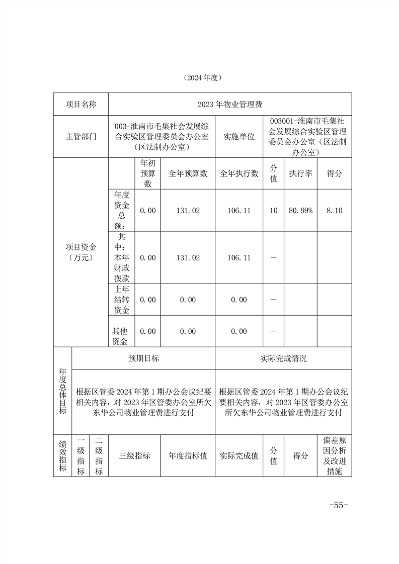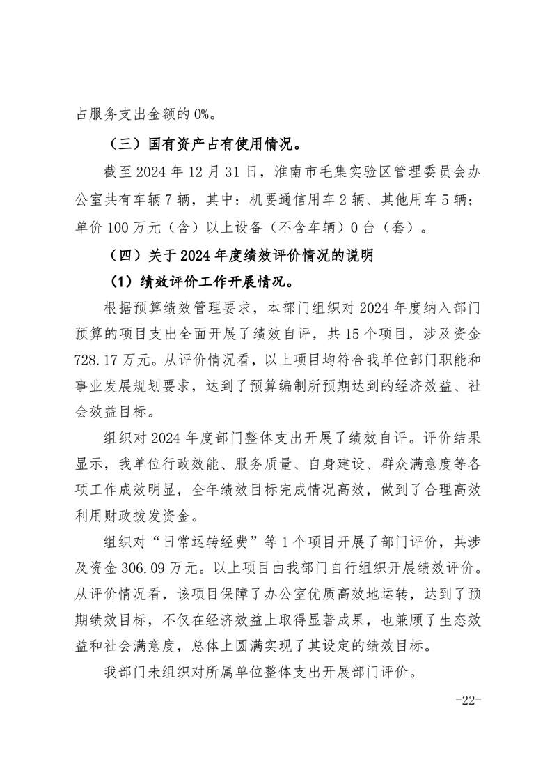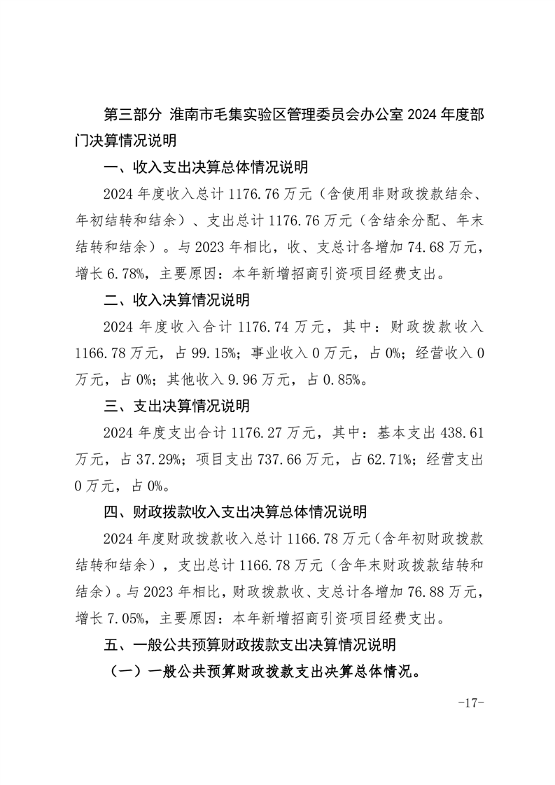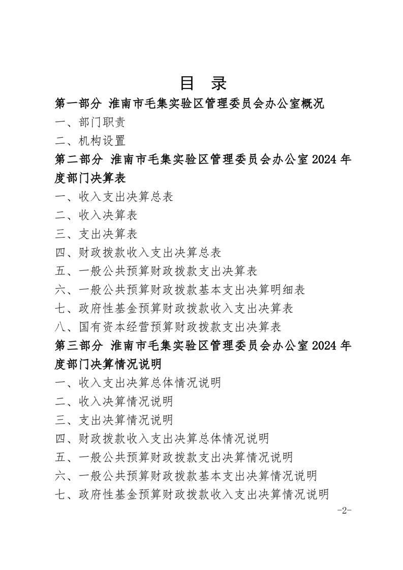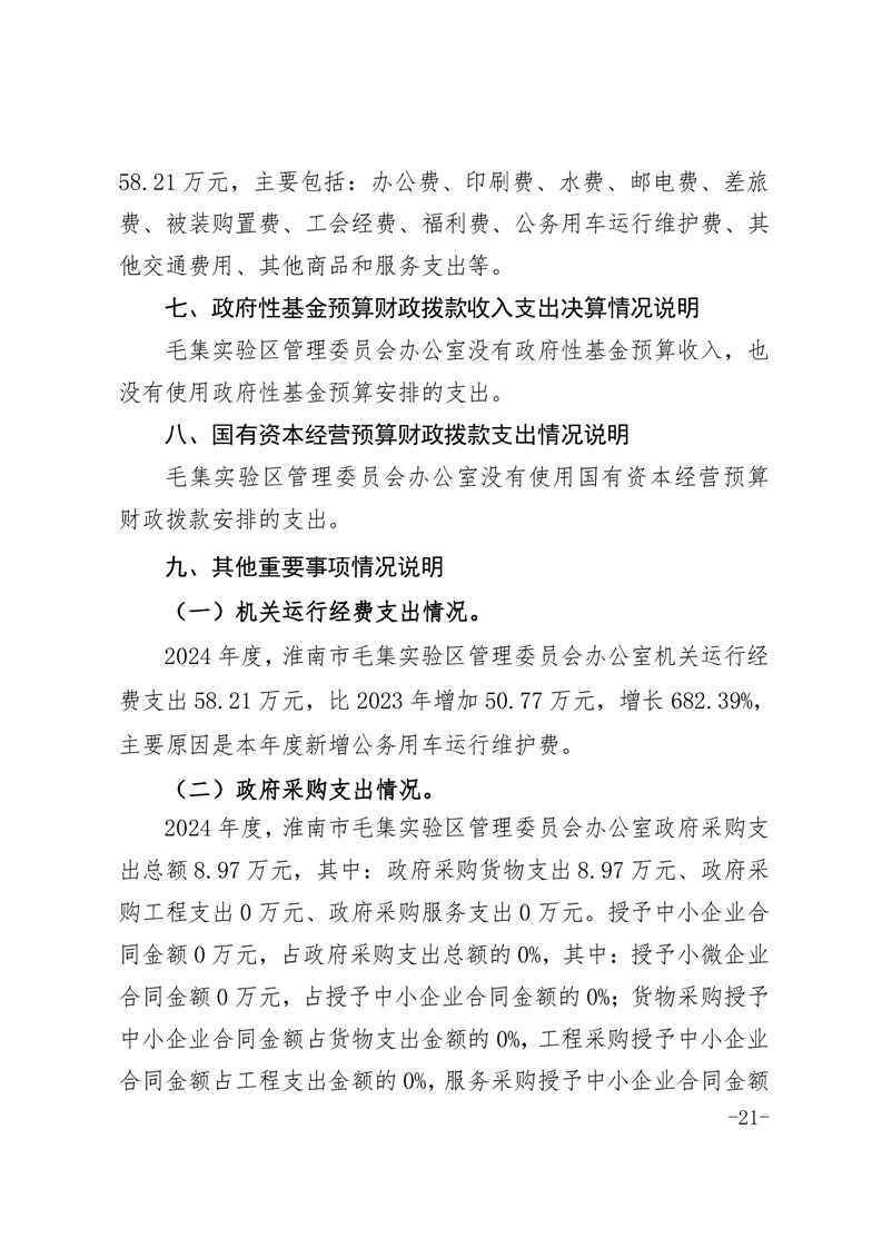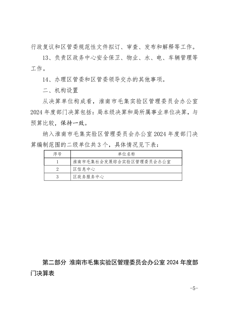 淮南市毛集实验区管理委员会办公室2024年度部门决算