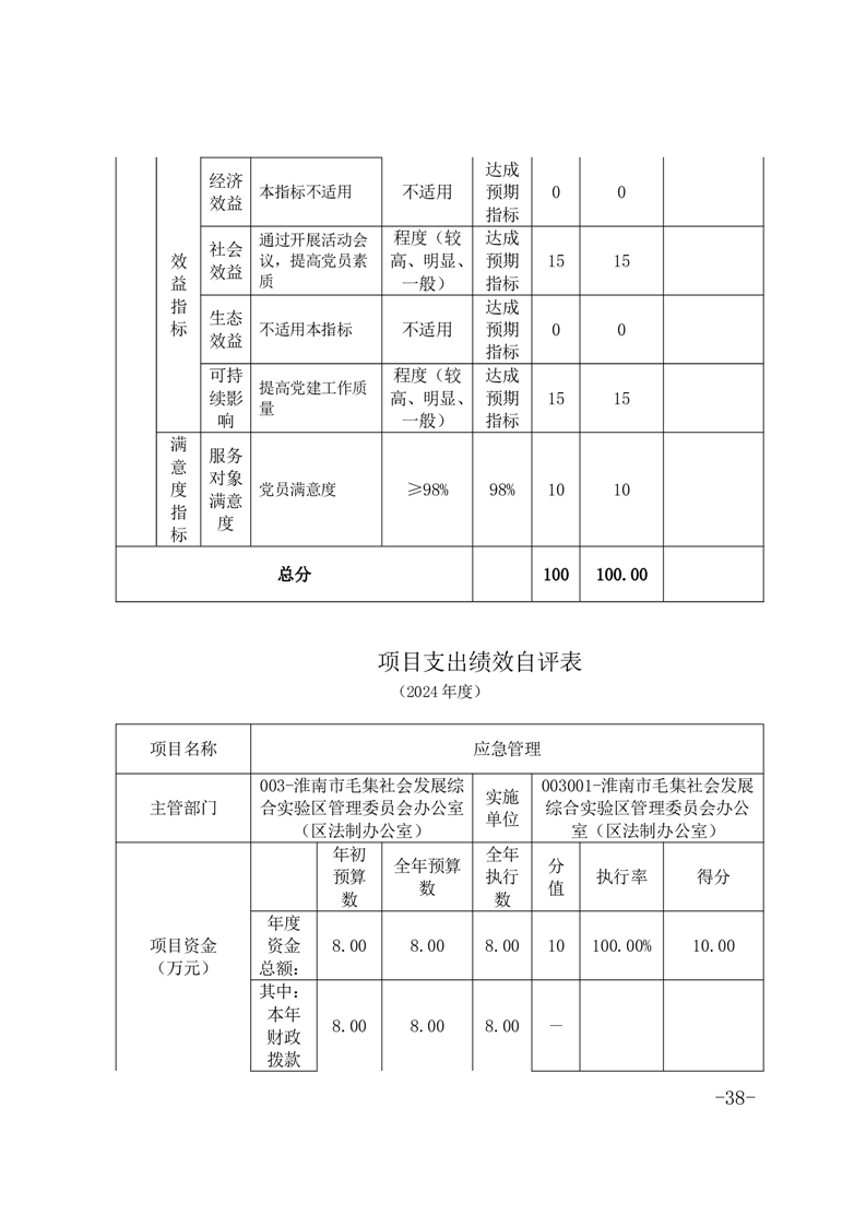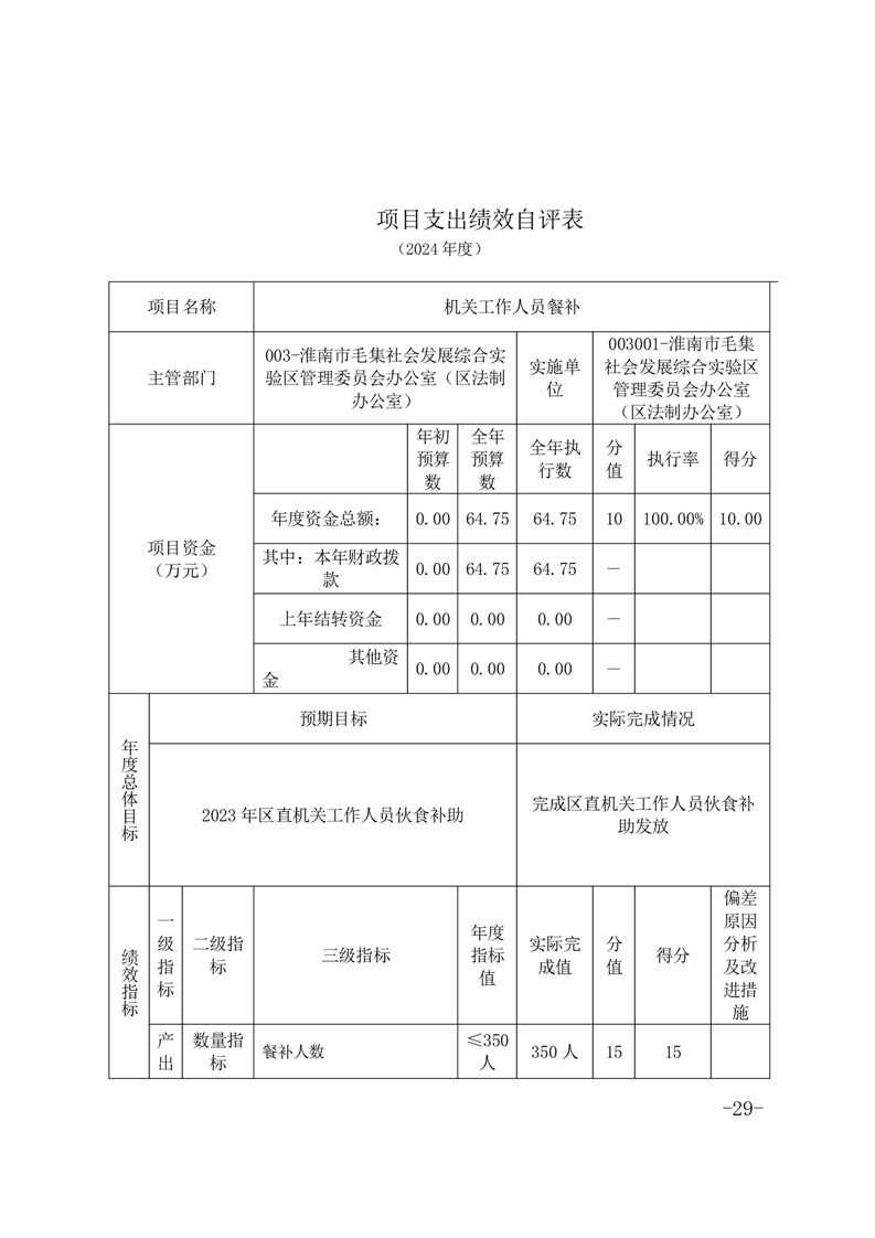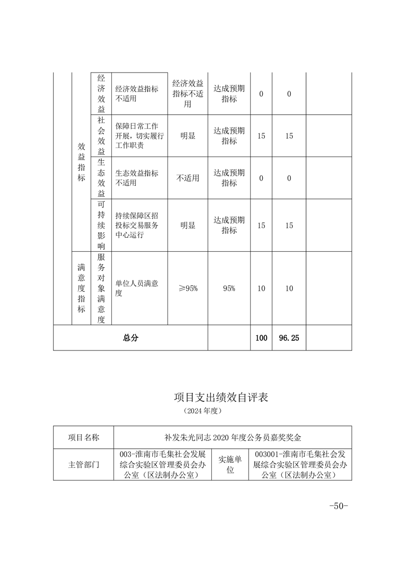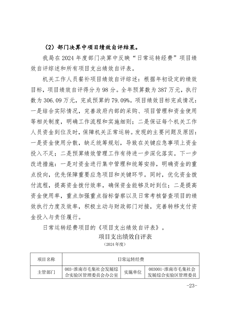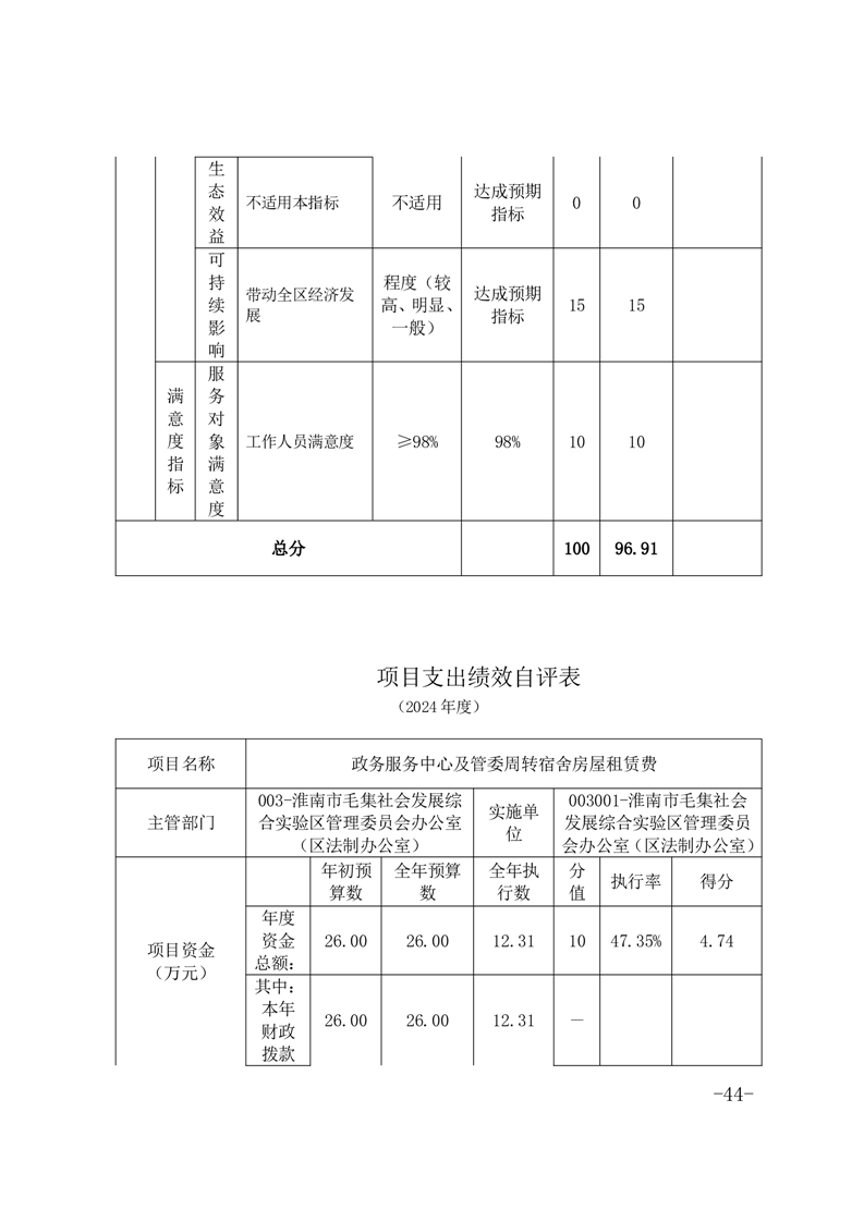 淮南市毛集实验区管理委员会办公室2024年度部门决算