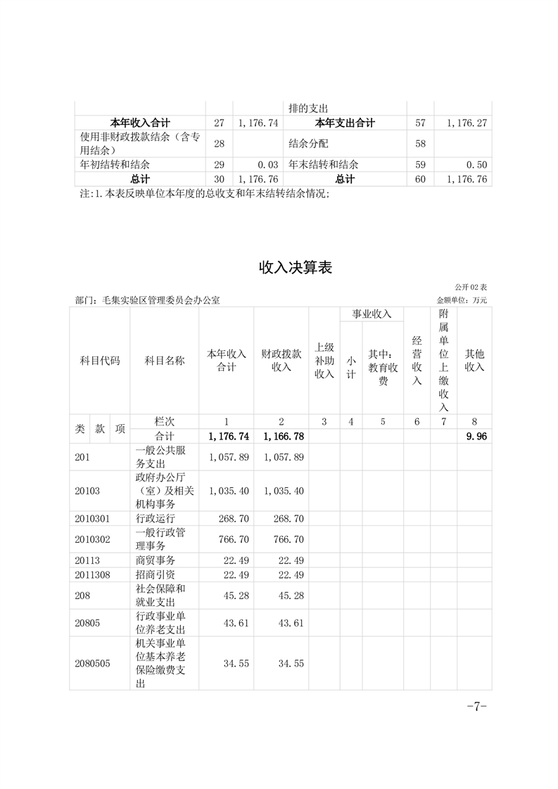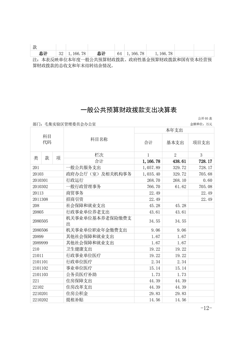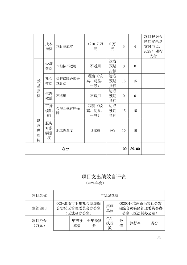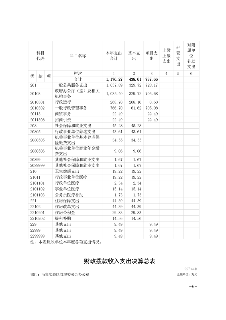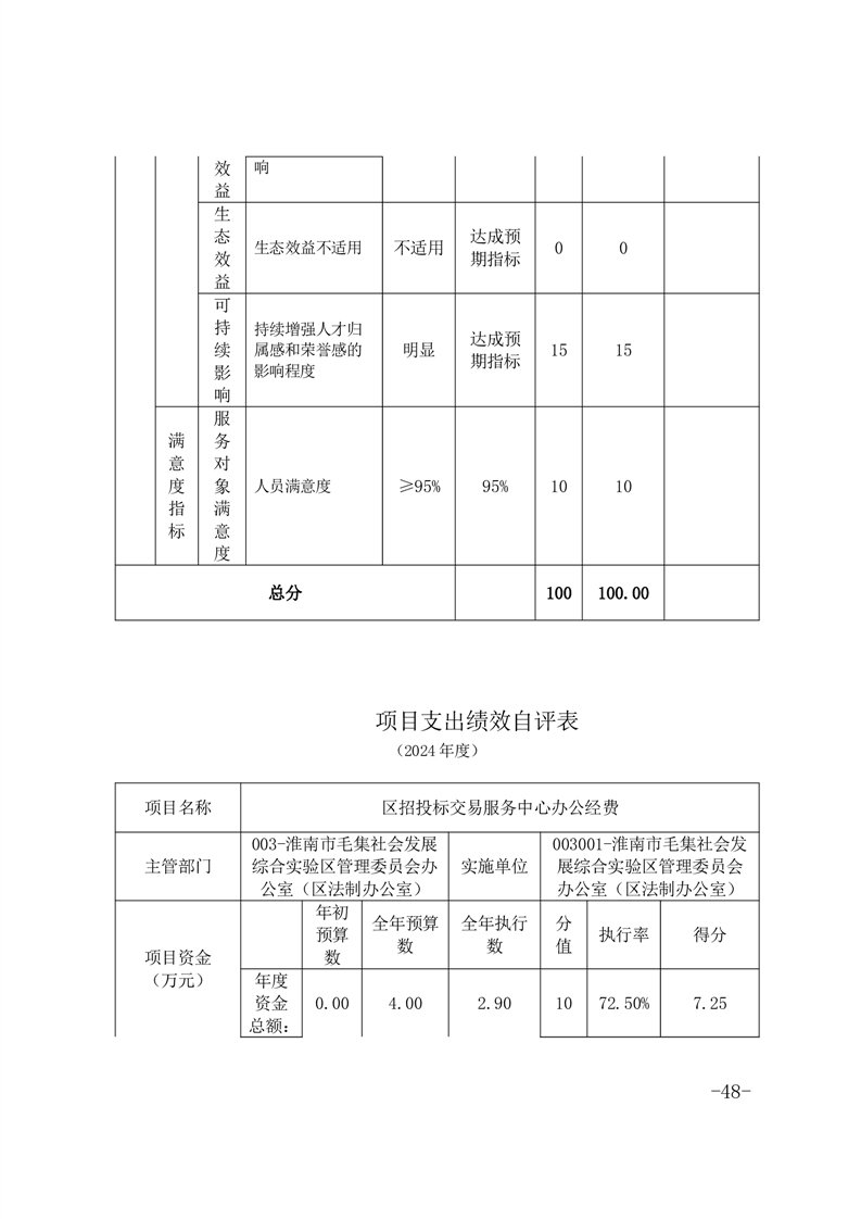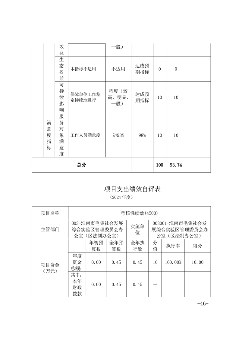 淮南市毛集实验区管理委员会办公室2024年度部门决算