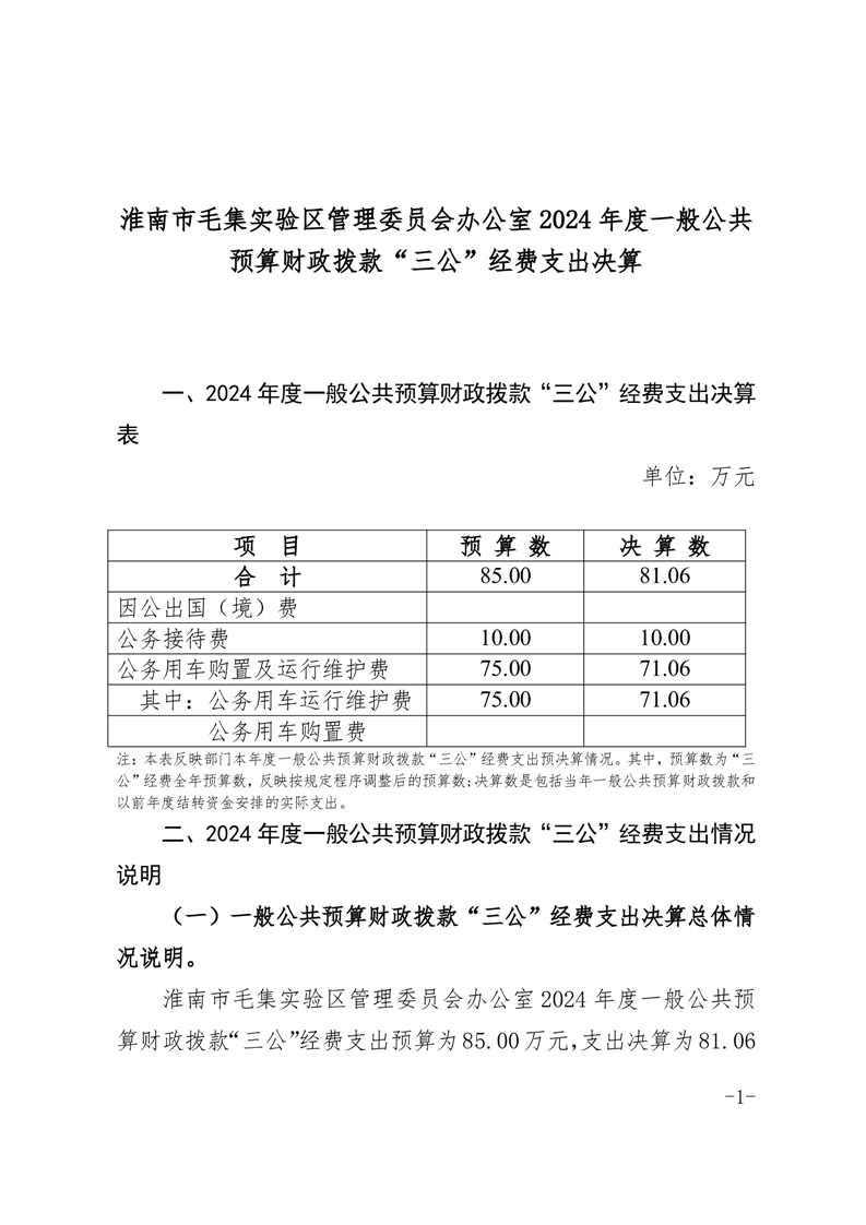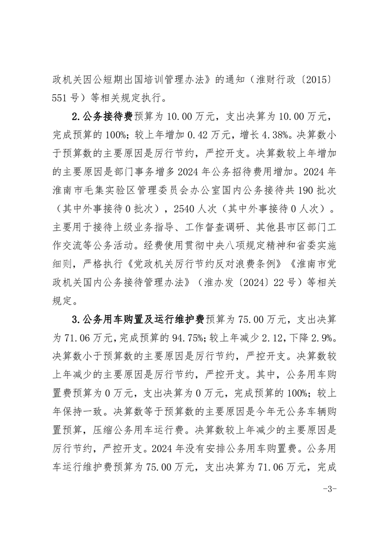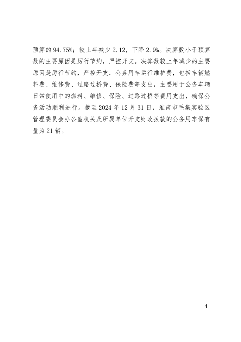 淮南市毛集实验区管理委员会办公室2024年度一般公共预算财政拨款“三公”经费支出决算