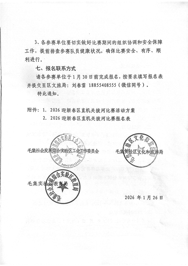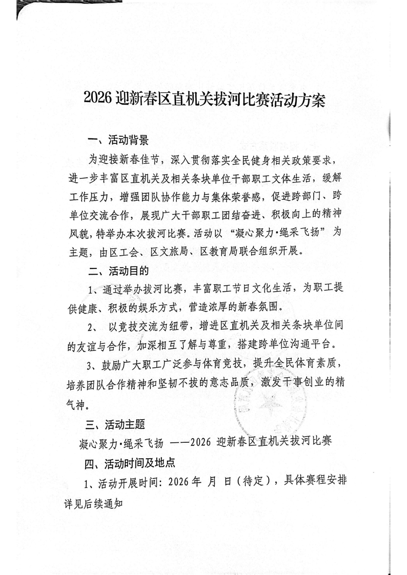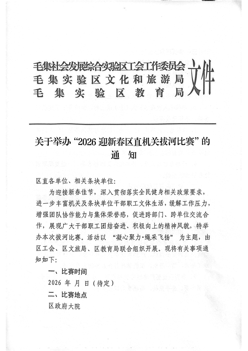 关于举办“2026迎新春区直机关拔河比赛”的通知