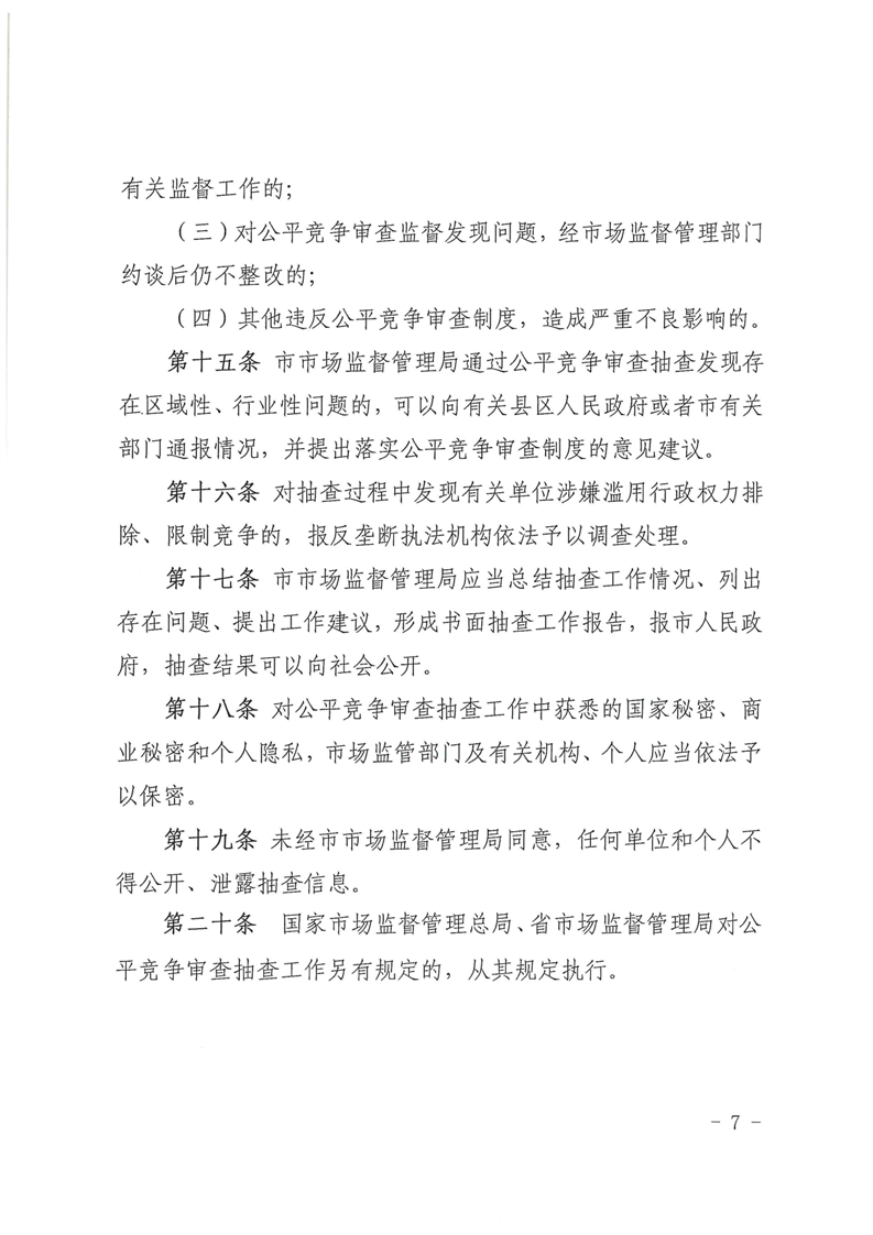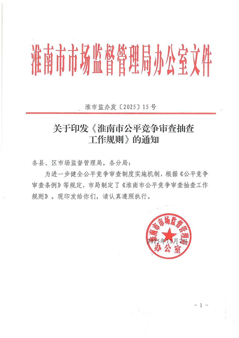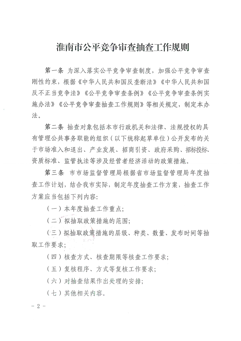 关于印发《淮南市公平竞争审查抽查工作规则》的通知