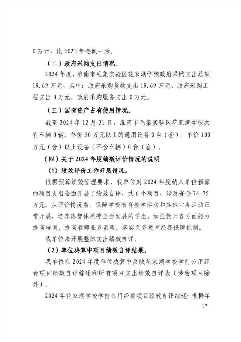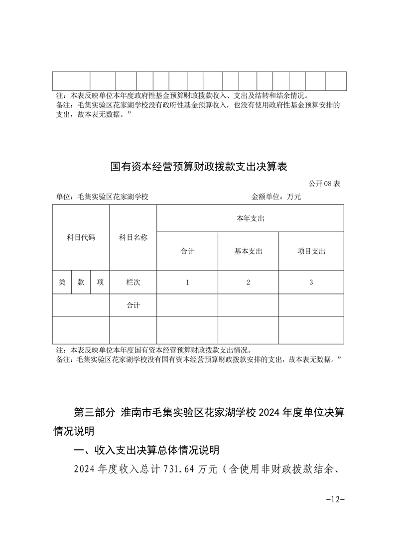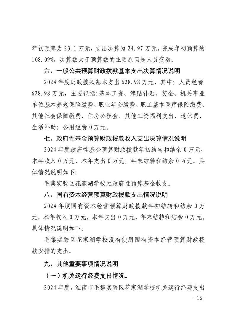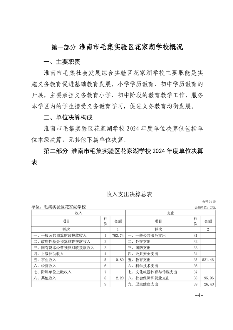| 名称: | 淮南市毛集实验区花家湖学校2024年度单位决算 |