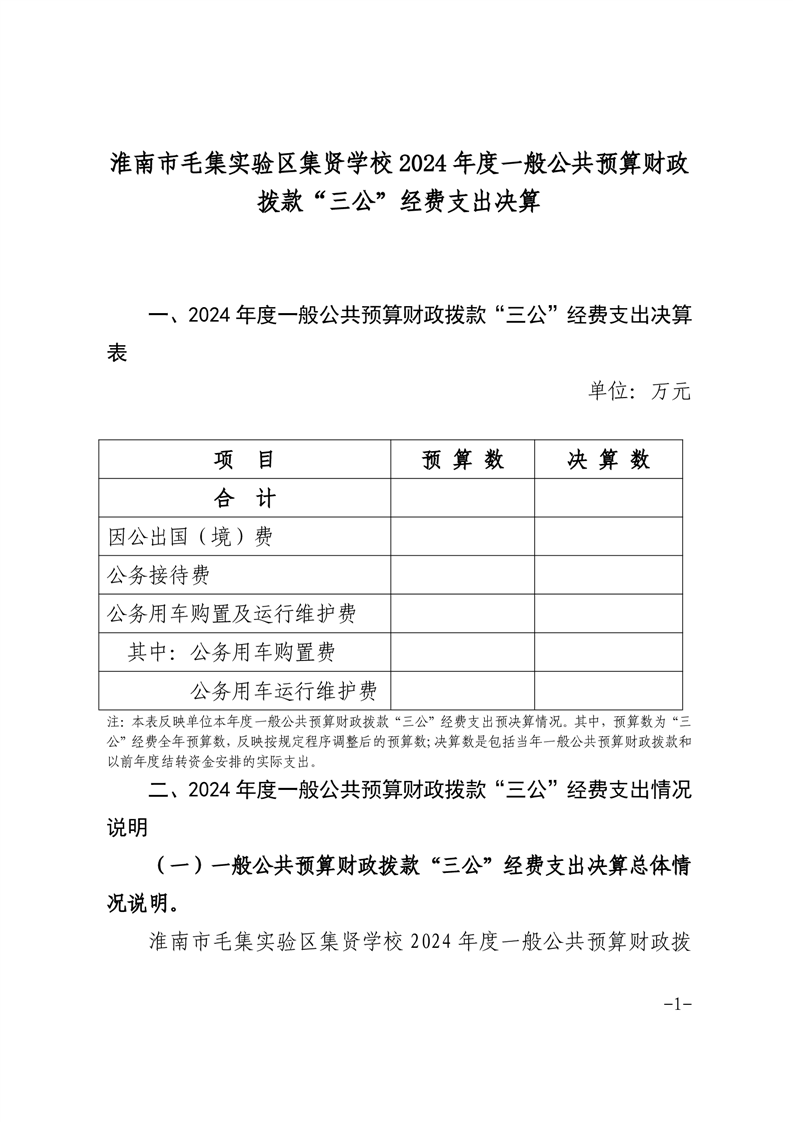 淮南市毛集实验区集贤学校2024年度一般公共预算财政拨款“三公”经费支出决算