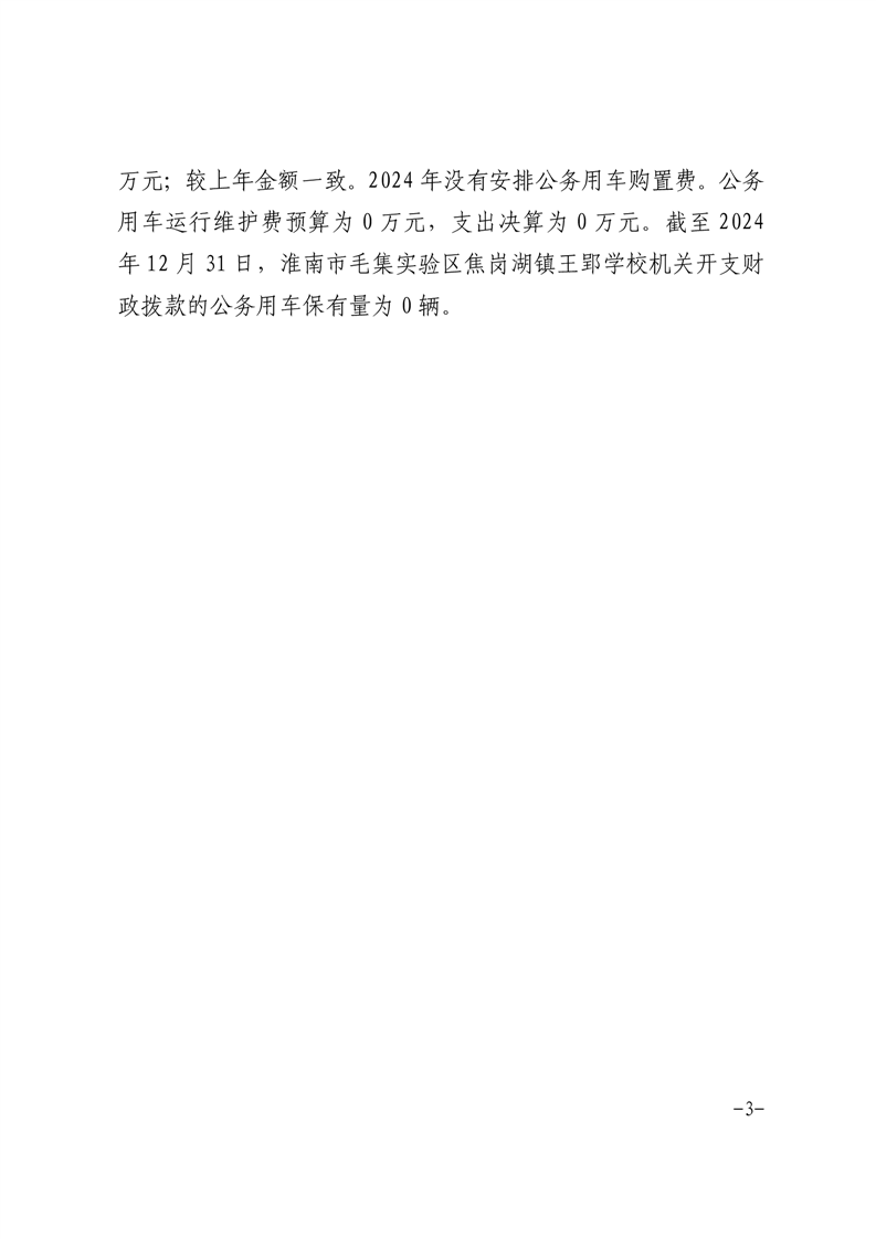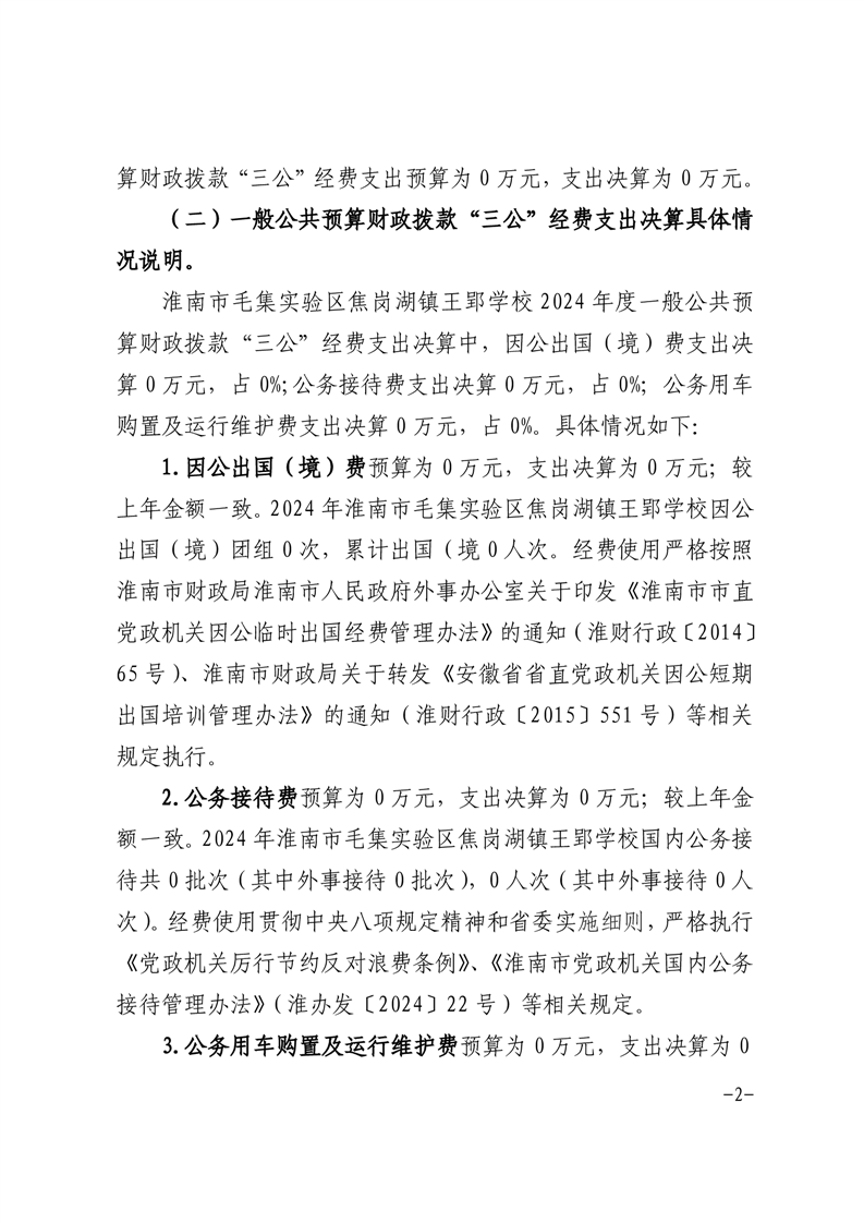 淮南市毛集实验区焦岗湖镇王郢学校2024年度一般公共预算财政拨款“三公”经费支出决算