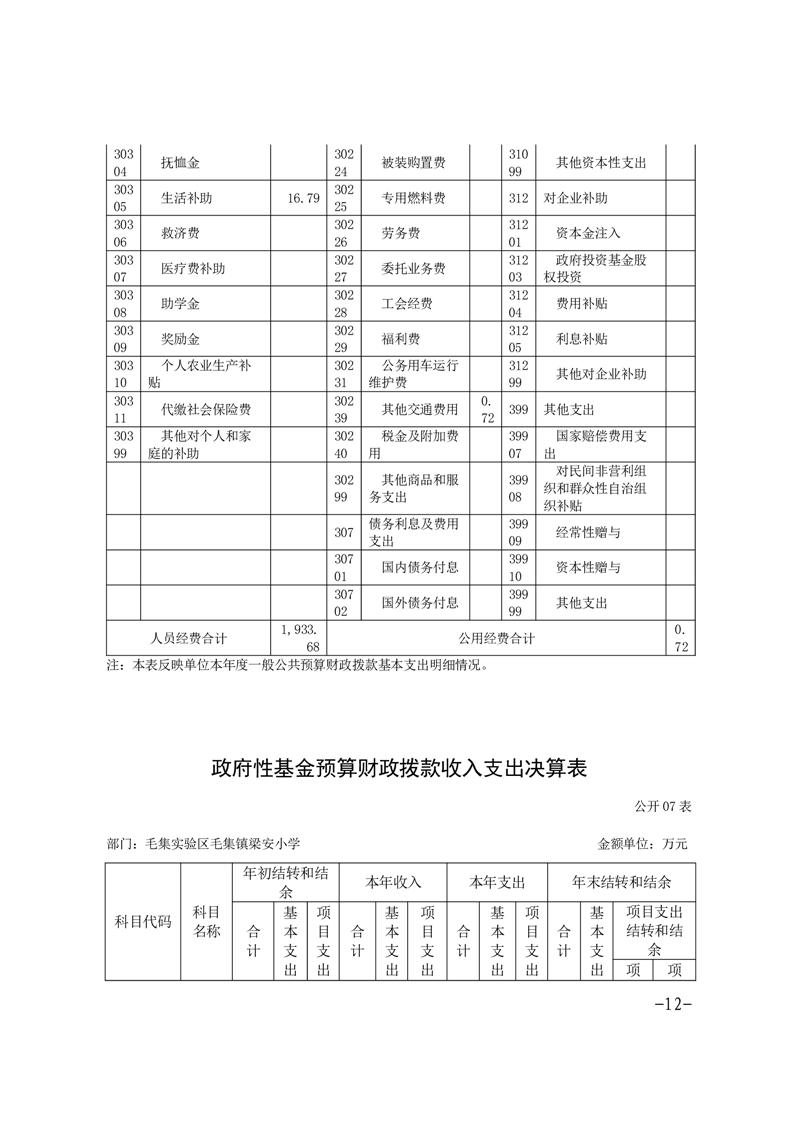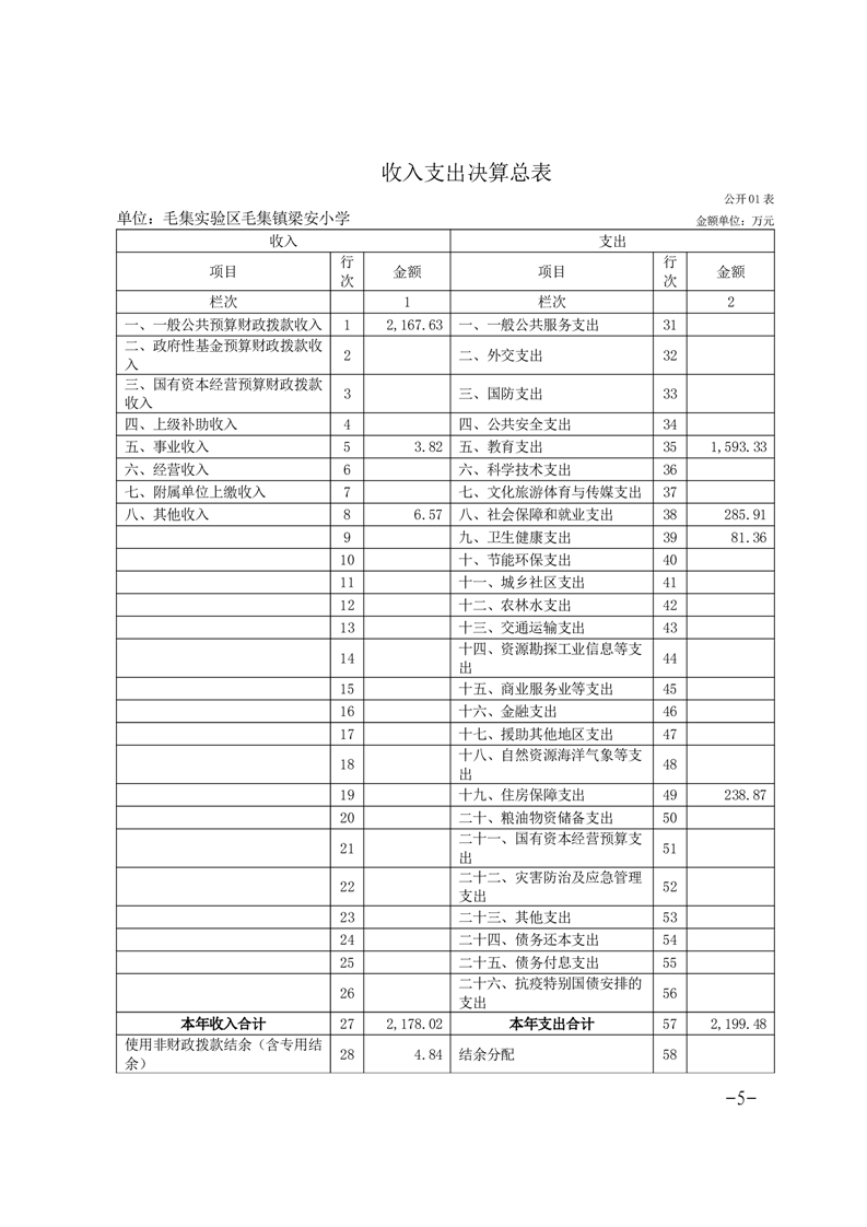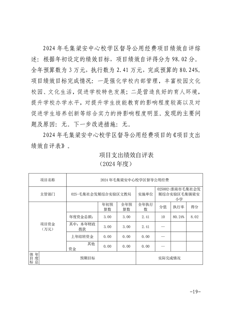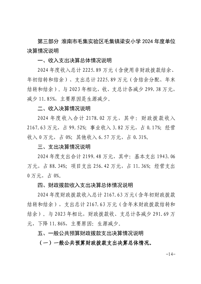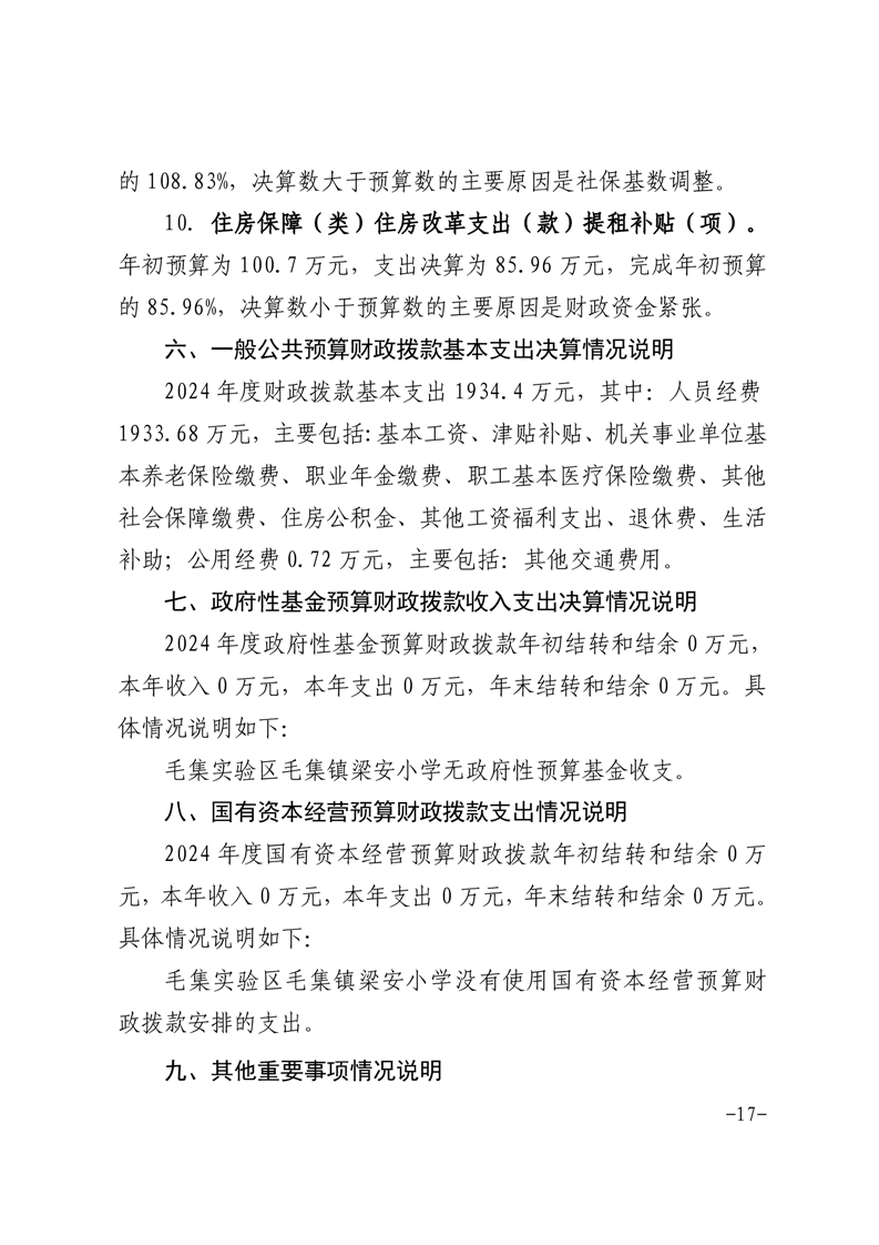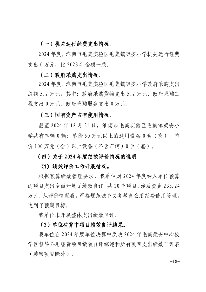 | 名称: | 淮南市毛集实验区毛集镇梁安小学2024年度单位决算 |
