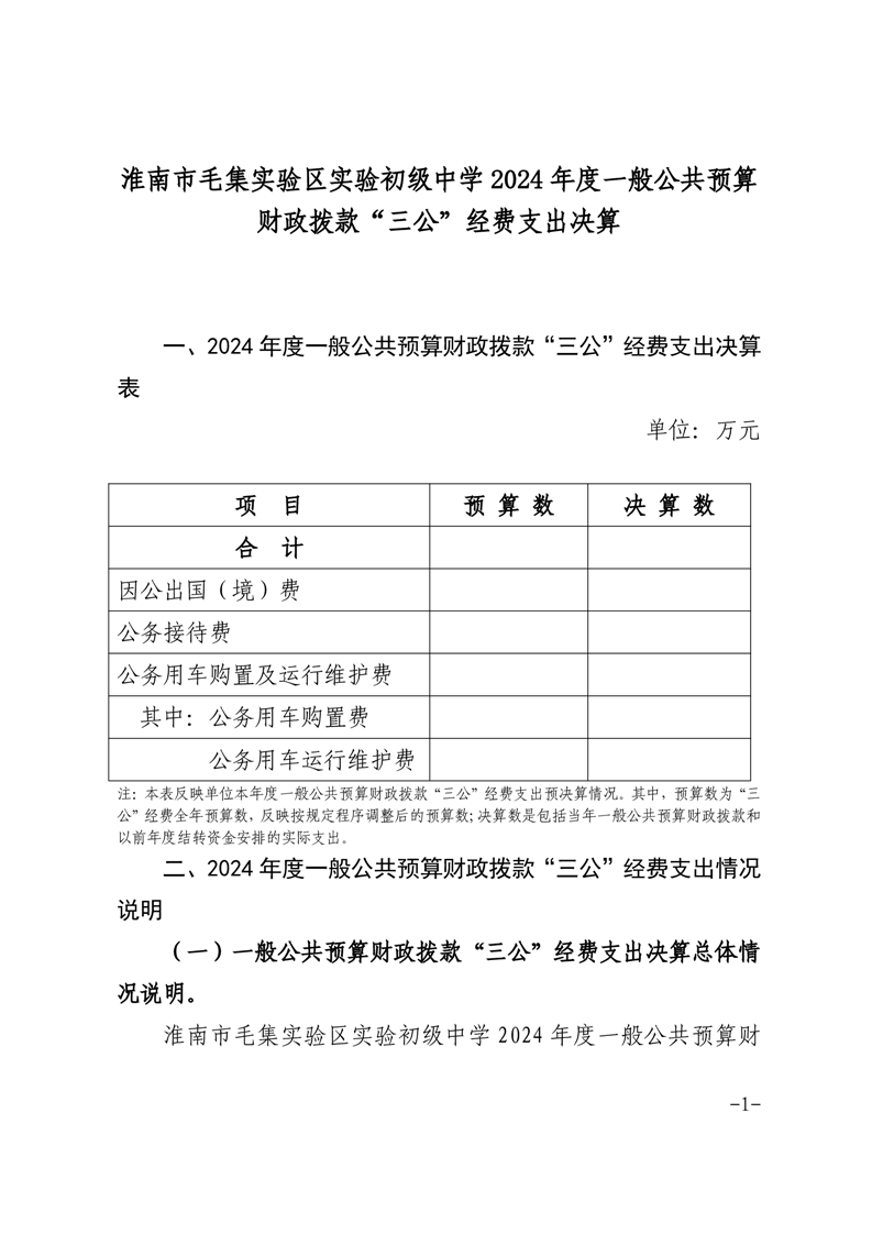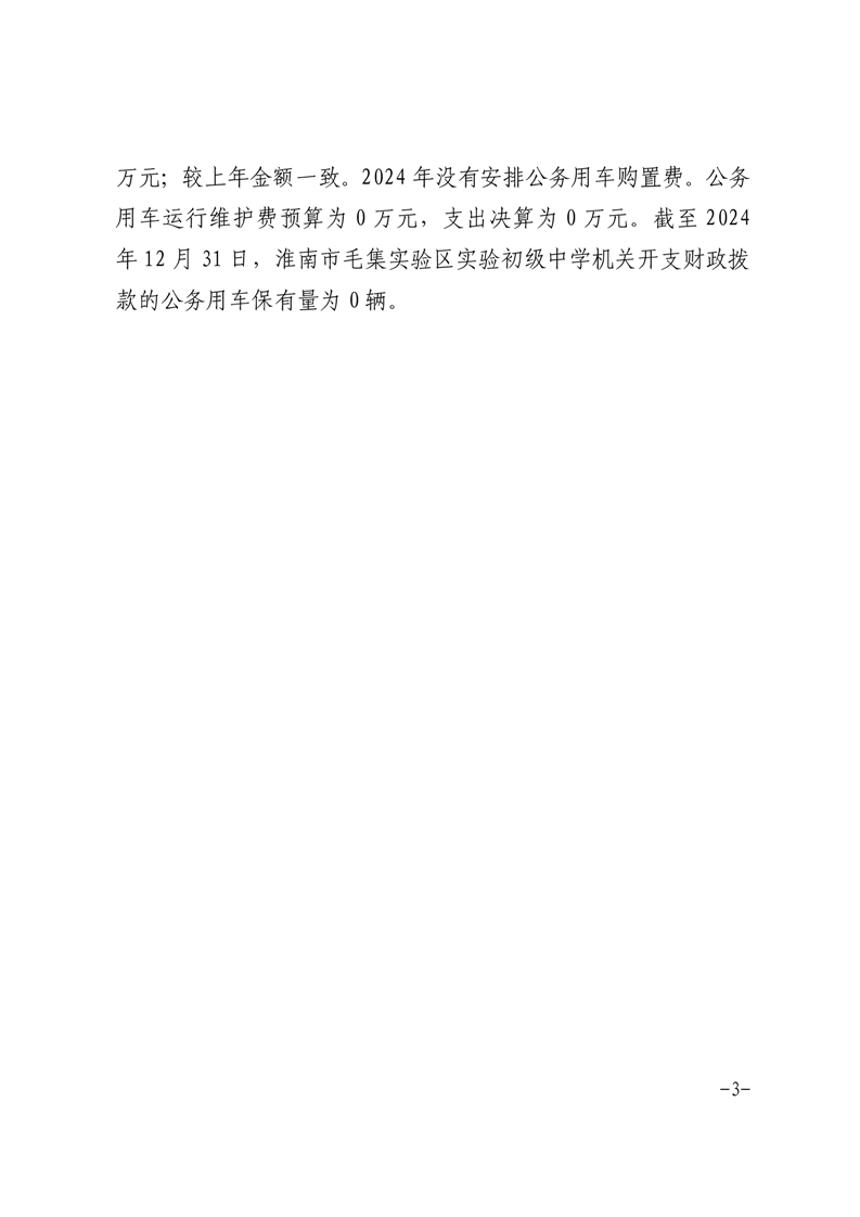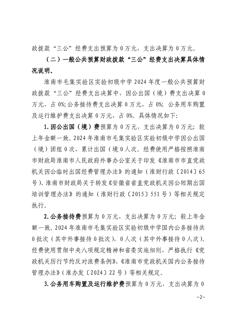 淮南市毛集实验区实验初级中学2024年度一般公共预算财政拨款“三公”经费支出决算