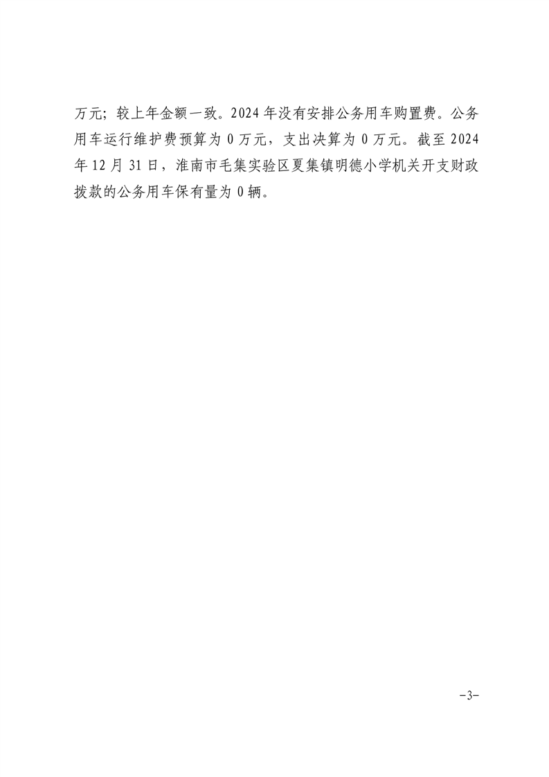 淮南市毛集实验区夏集镇明德小学2024年度一般公共预算财政拨款“三公”经费支出决算