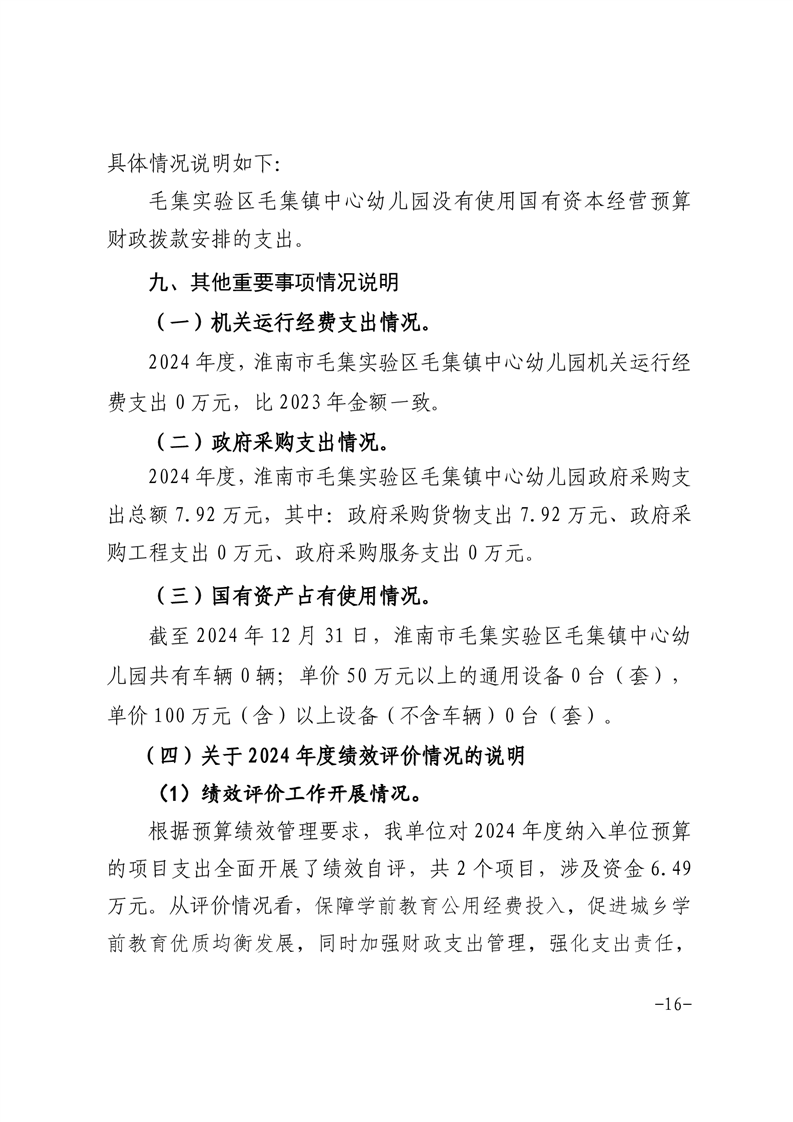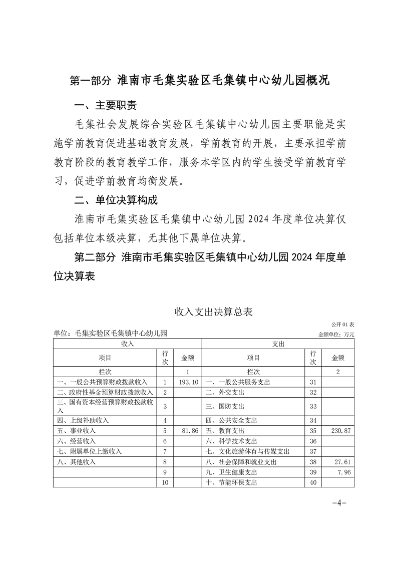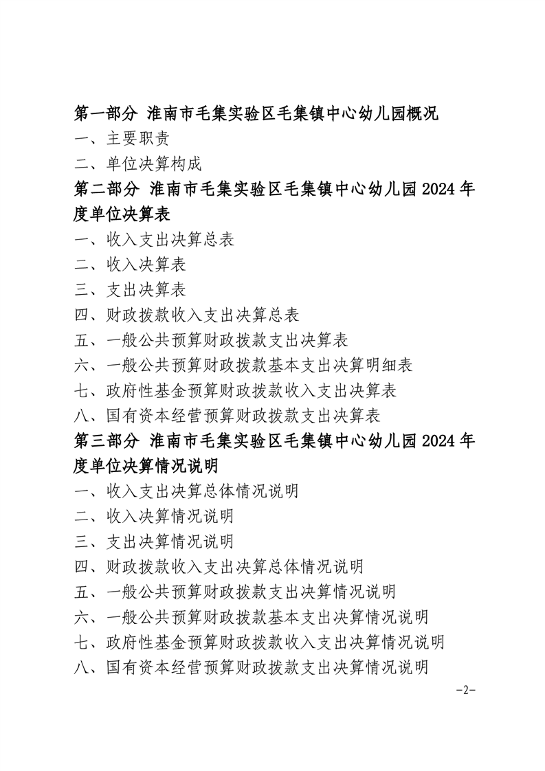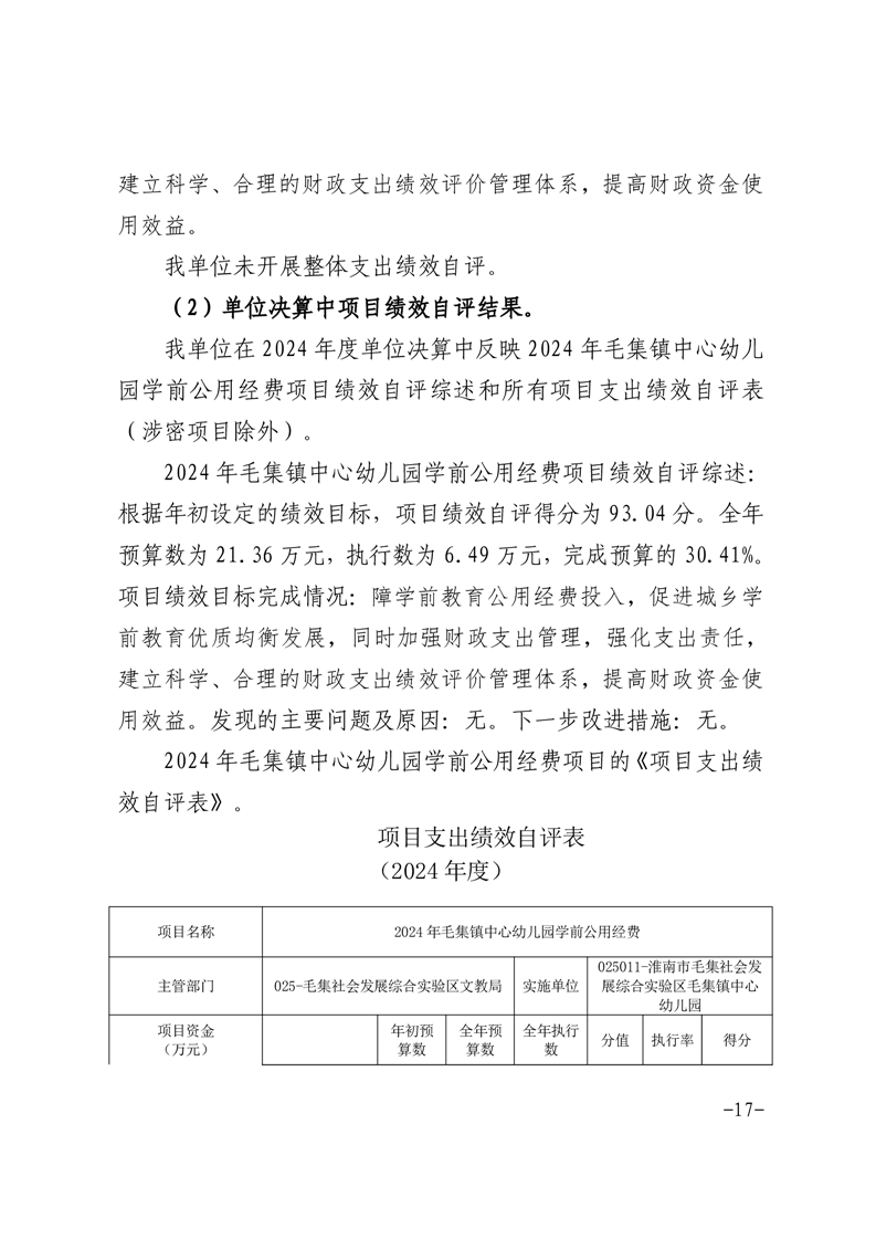 | 名称: | 淮南市毛集实验区毛集镇中心幼儿园2024年度单位决算 |