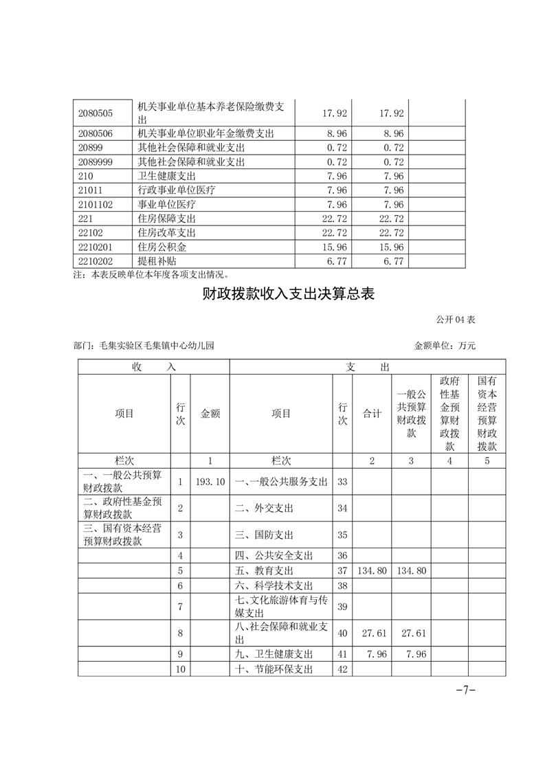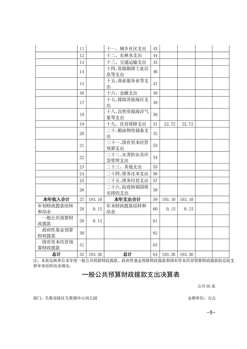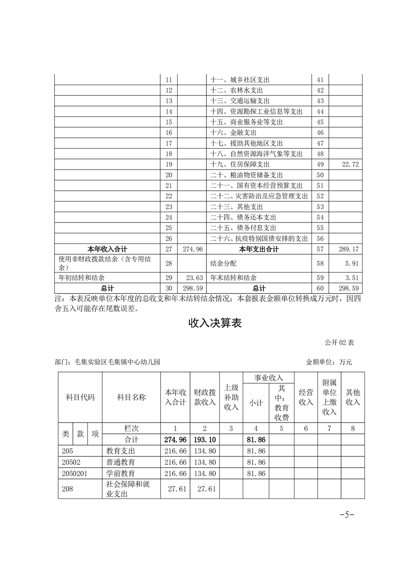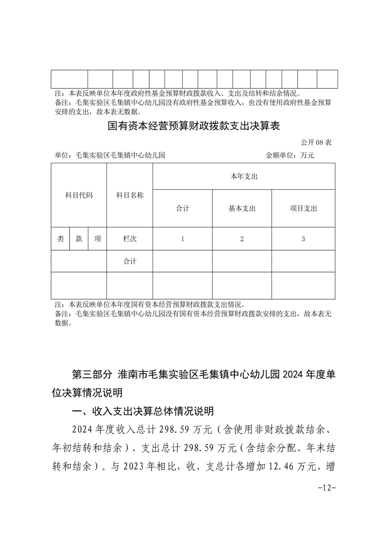 | 名称: | 淮南市毛集实验区毛集镇中心幼儿园2024年度单位决算 |