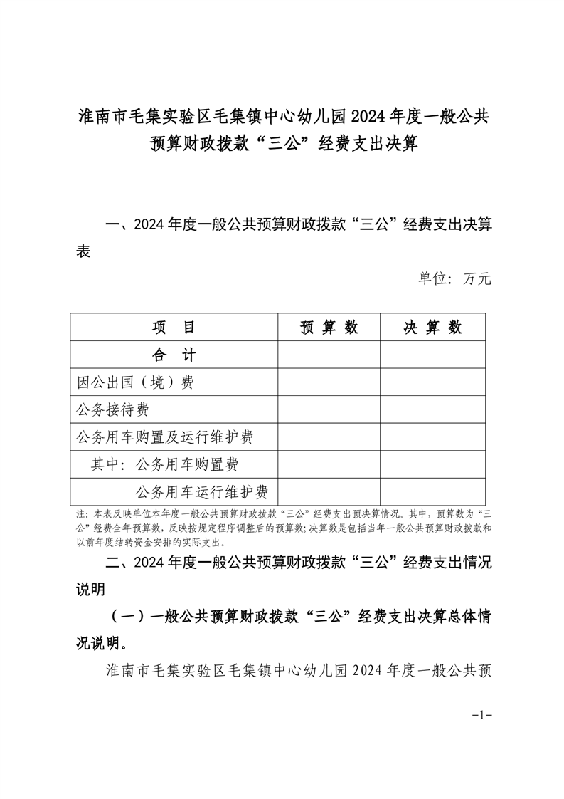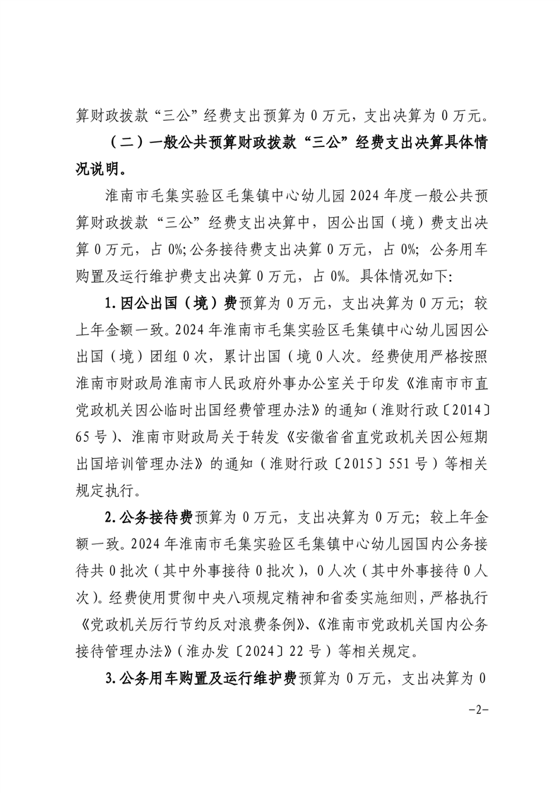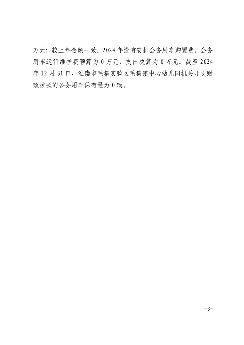 淮南市毛集实验区毛集镇中心幼儿园2024年度一般公共预算财政拨款“三公”经费支出决算