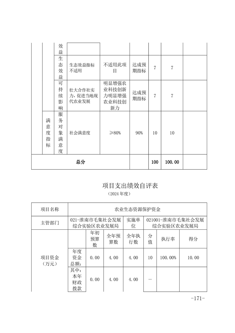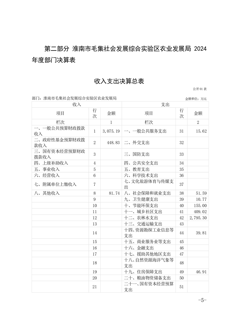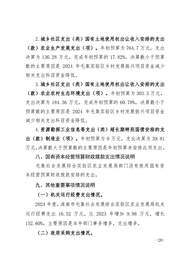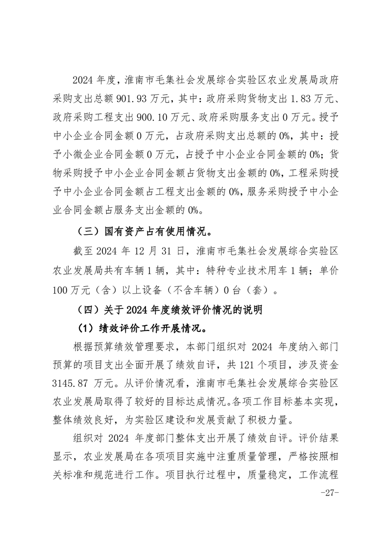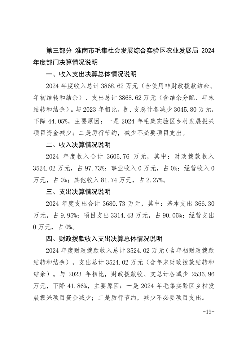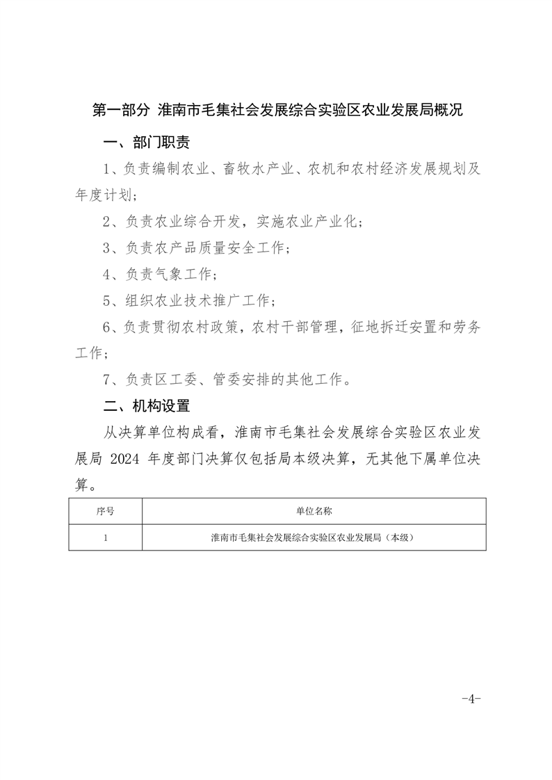 淮南市毛集社会发展综合实验区农业发展局2024年度部门决算