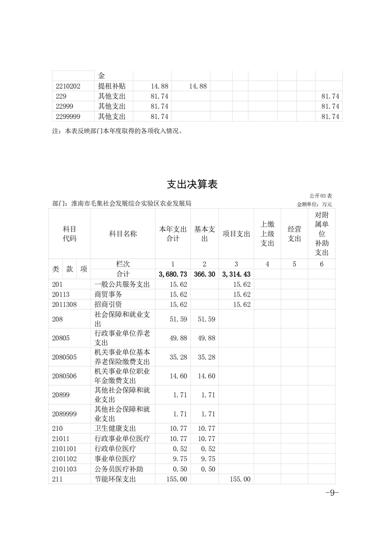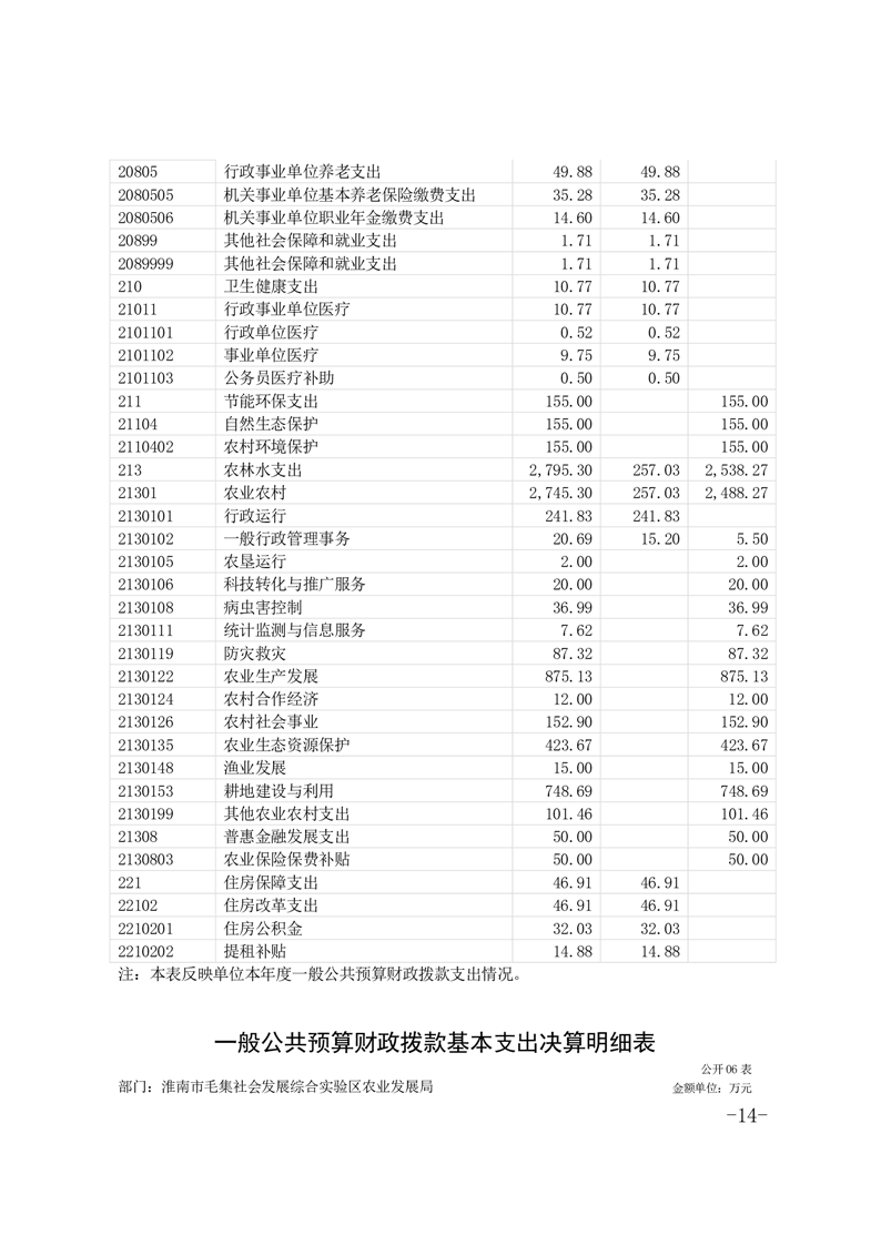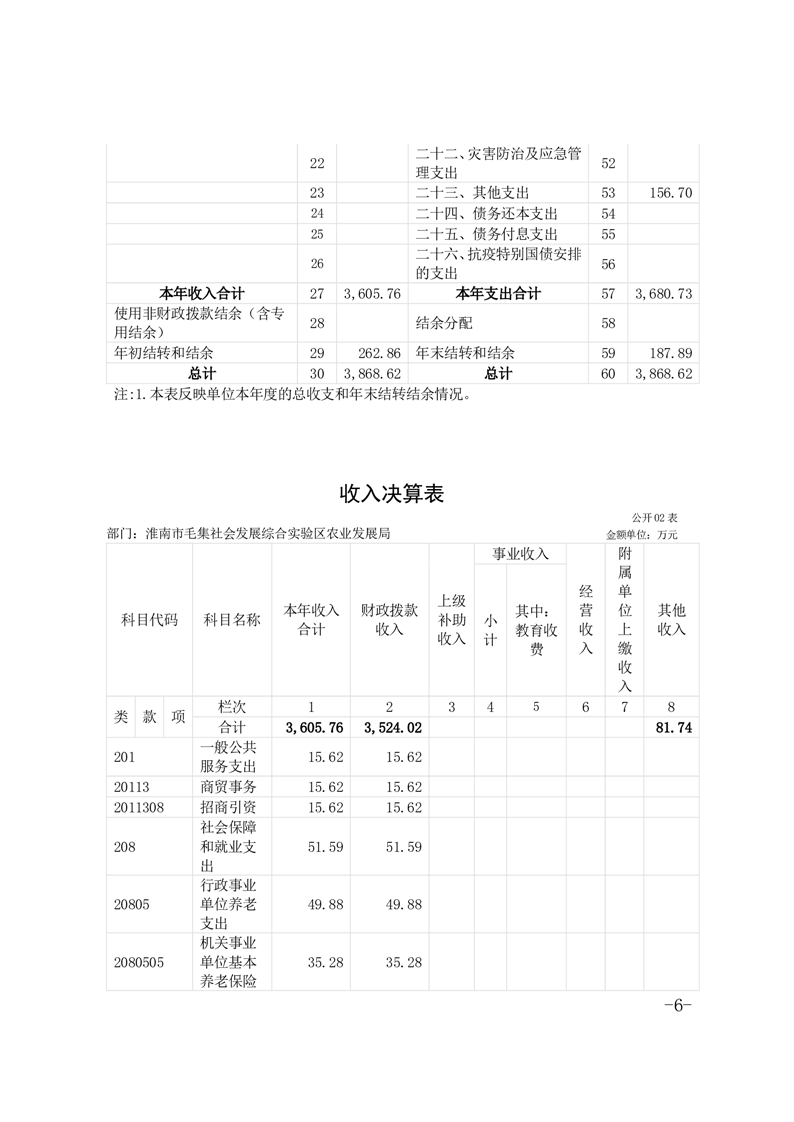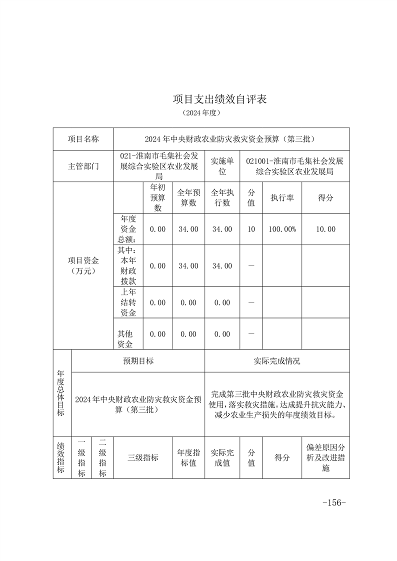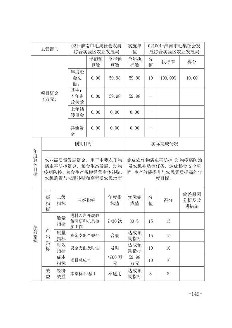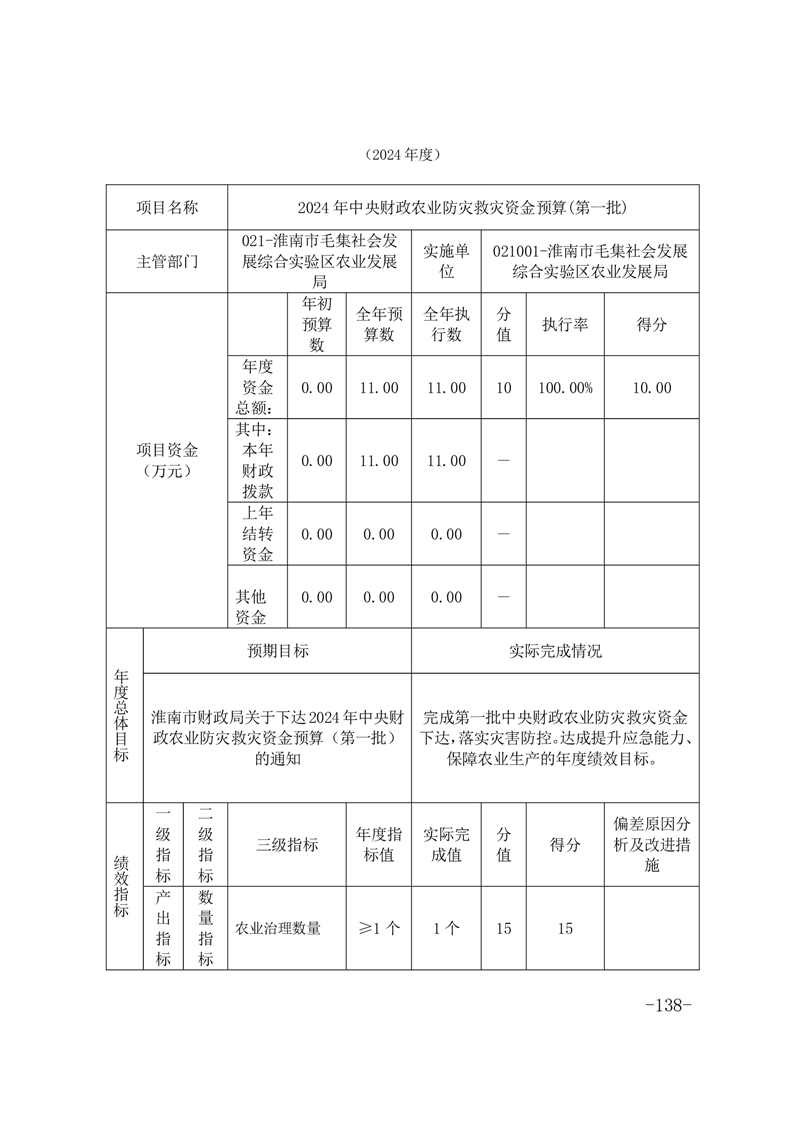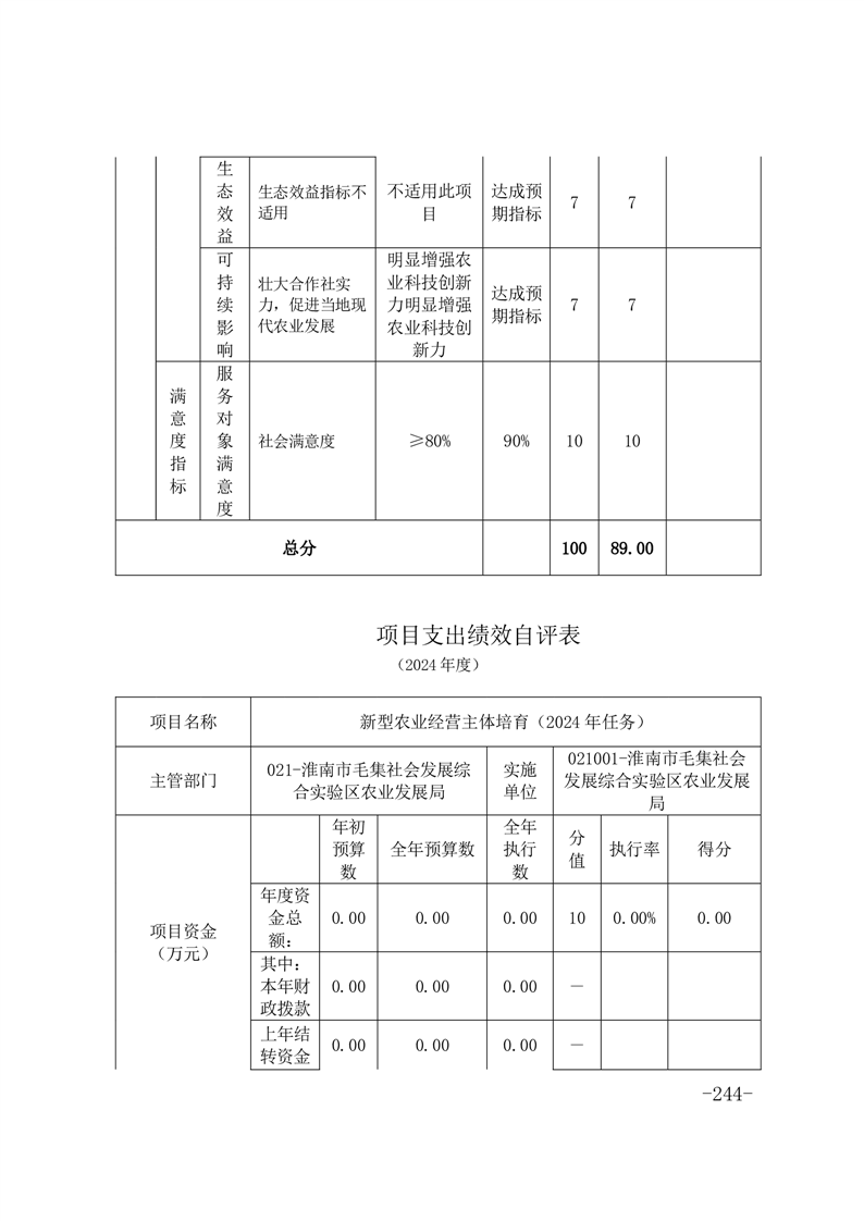 淮南市毛集社会发展综合实验区农业发展局2024年度部门决算