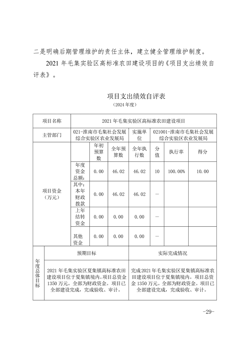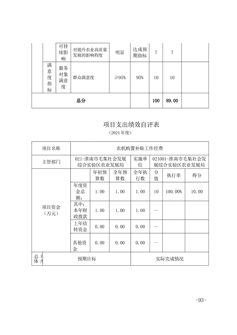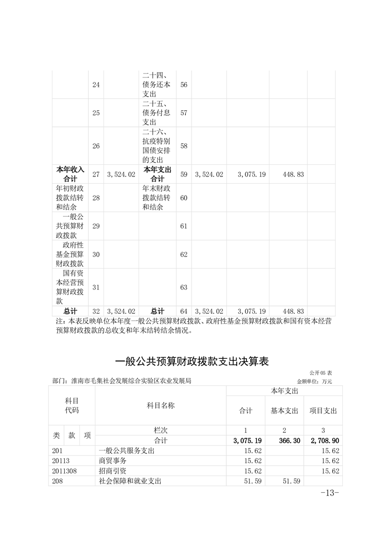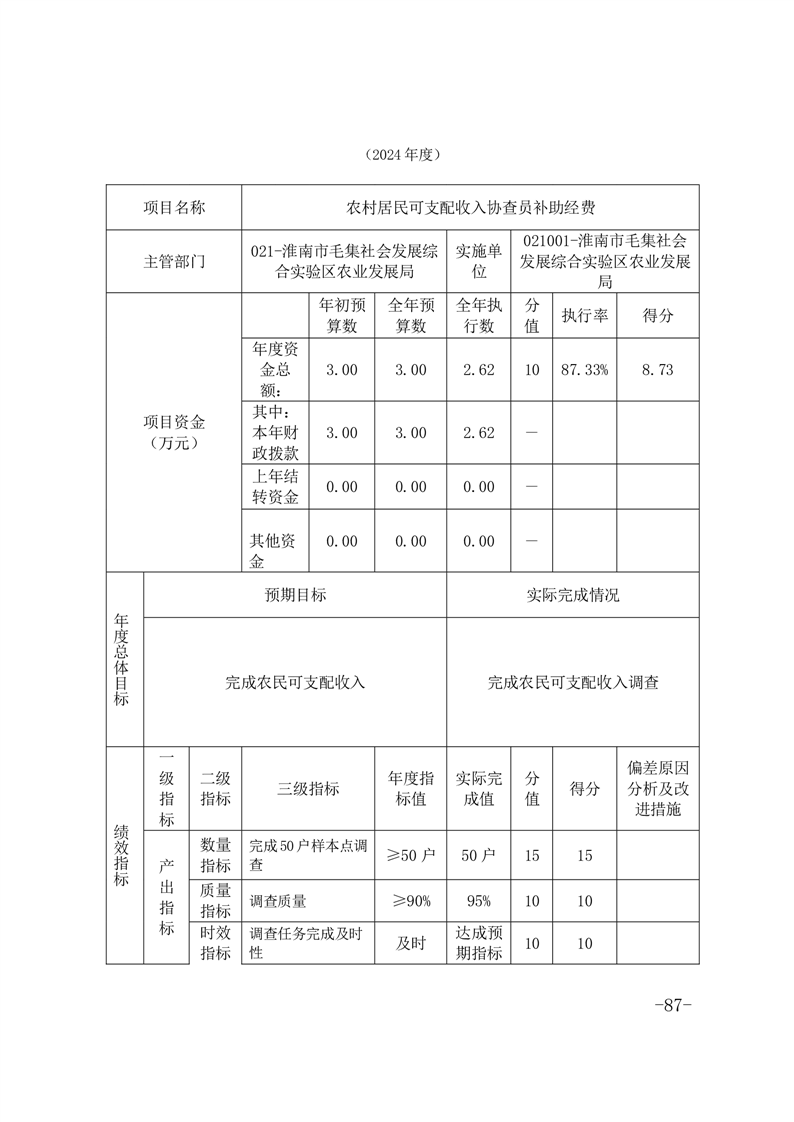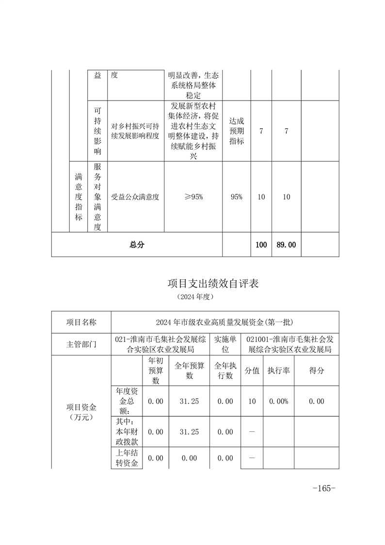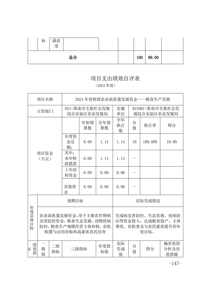 淮南市毛集社会发展综合实验区农业发展局2024年度部门决算