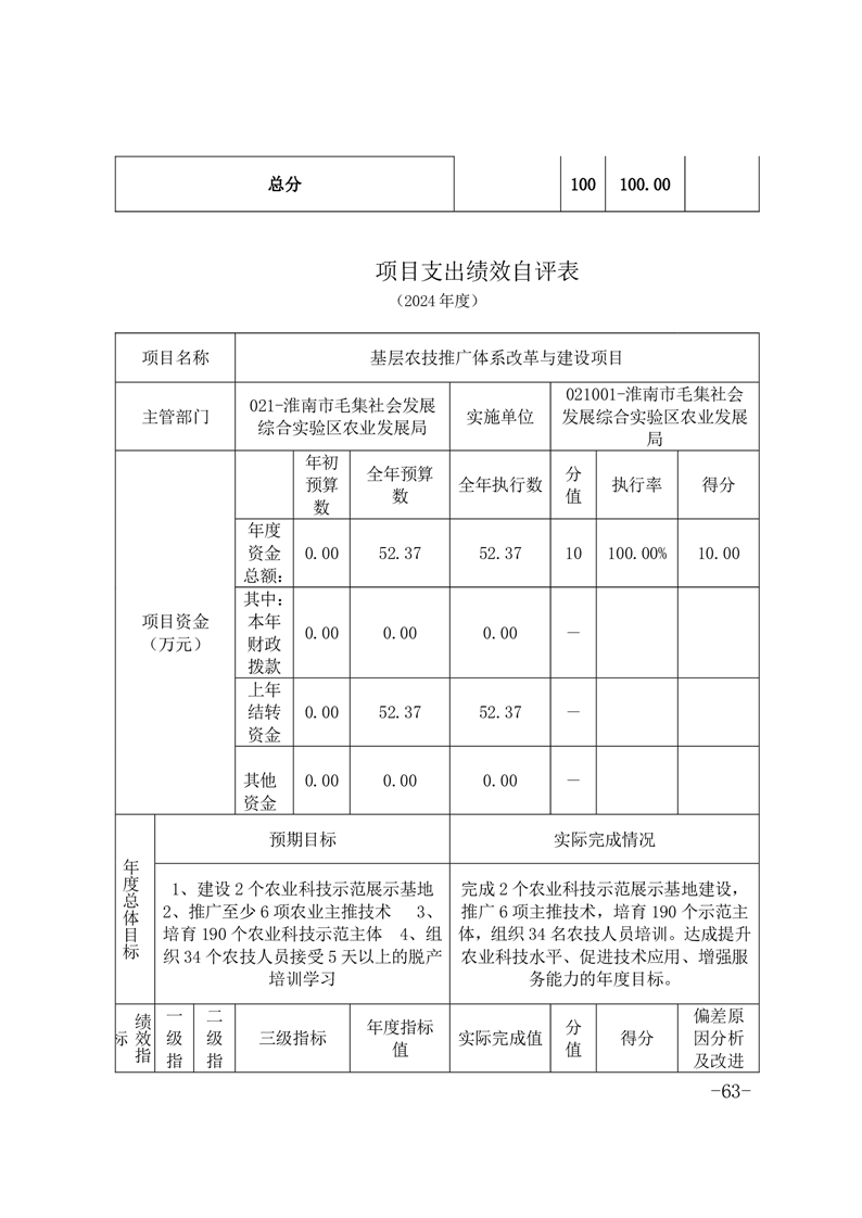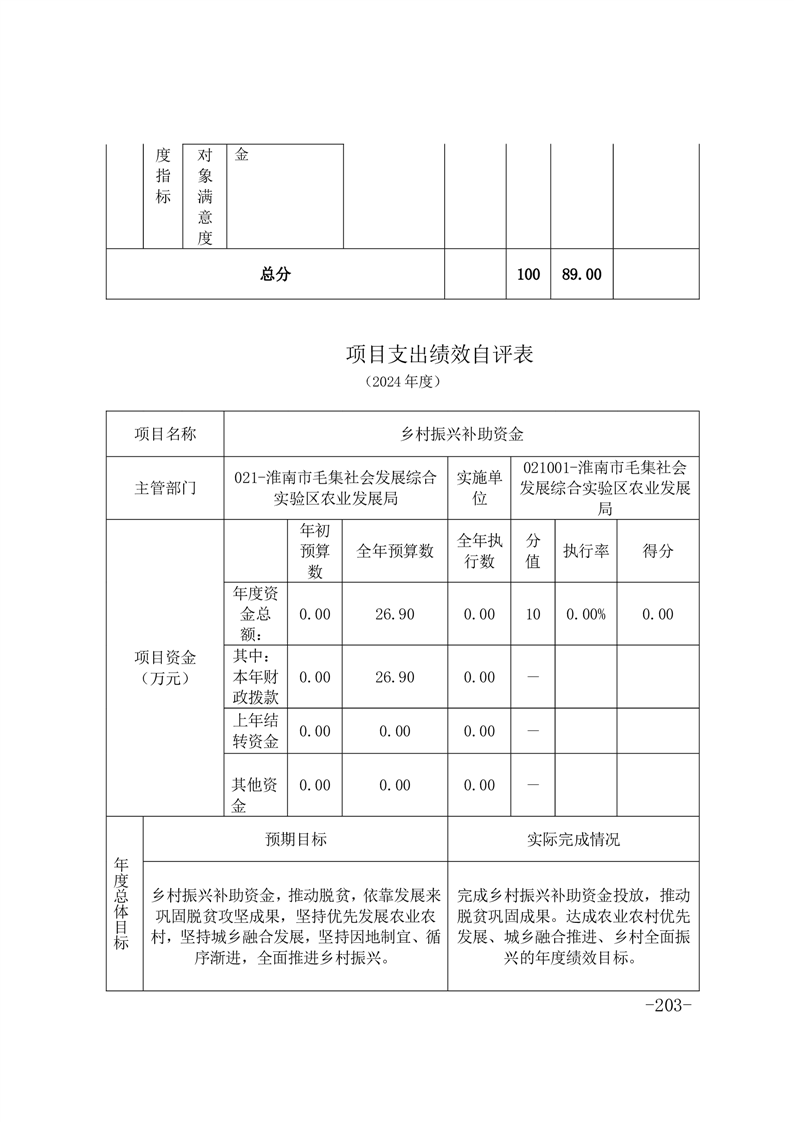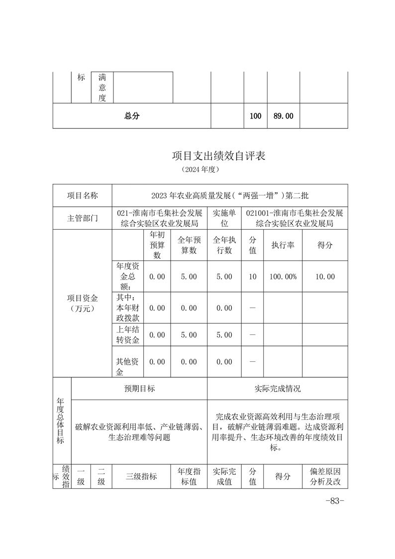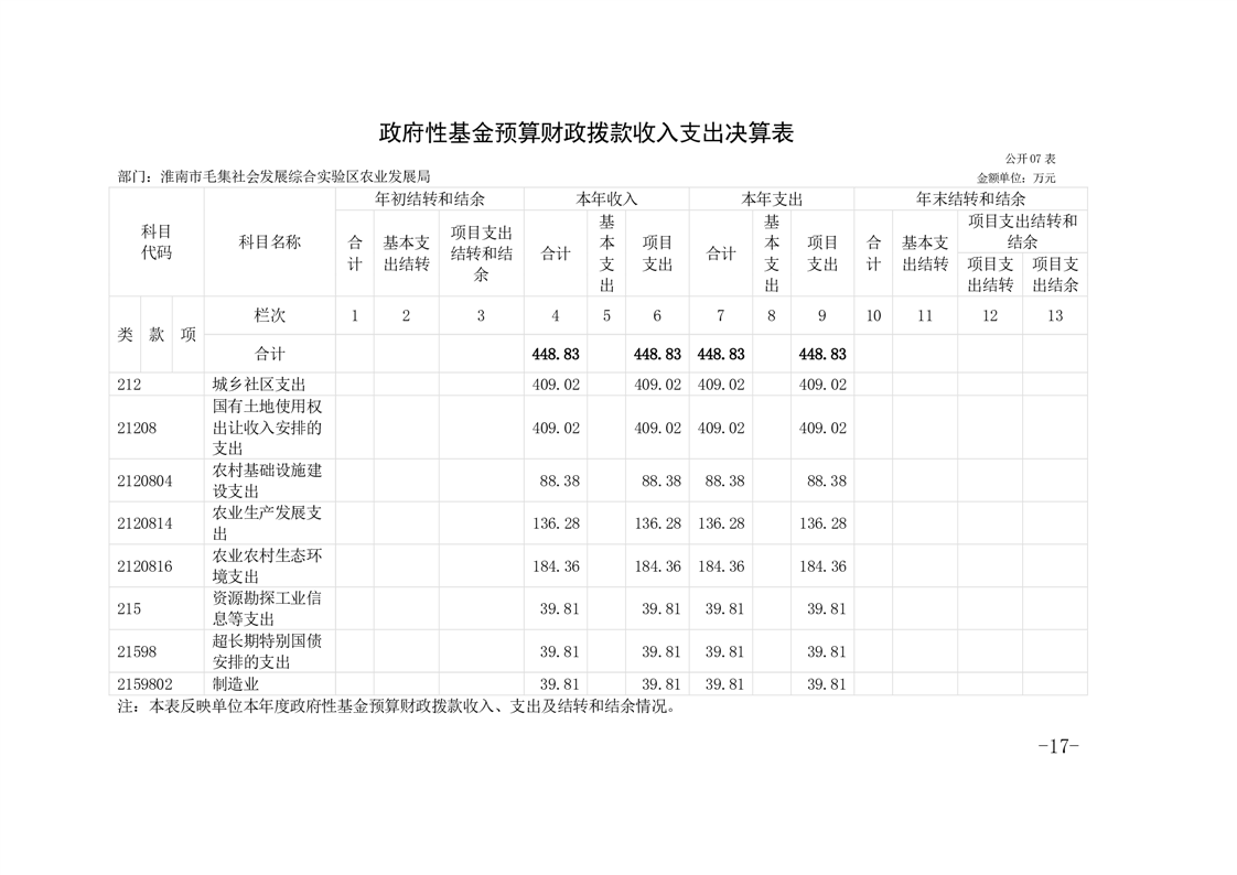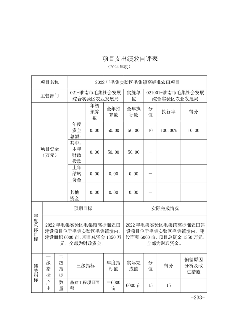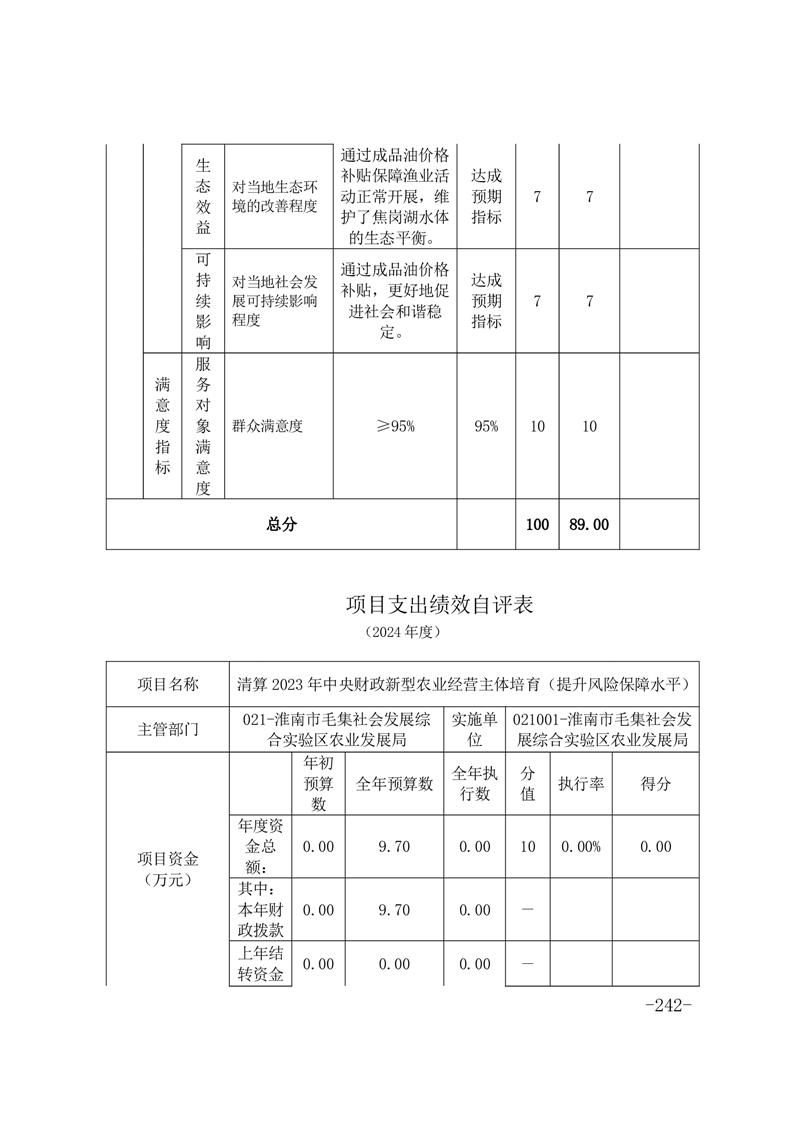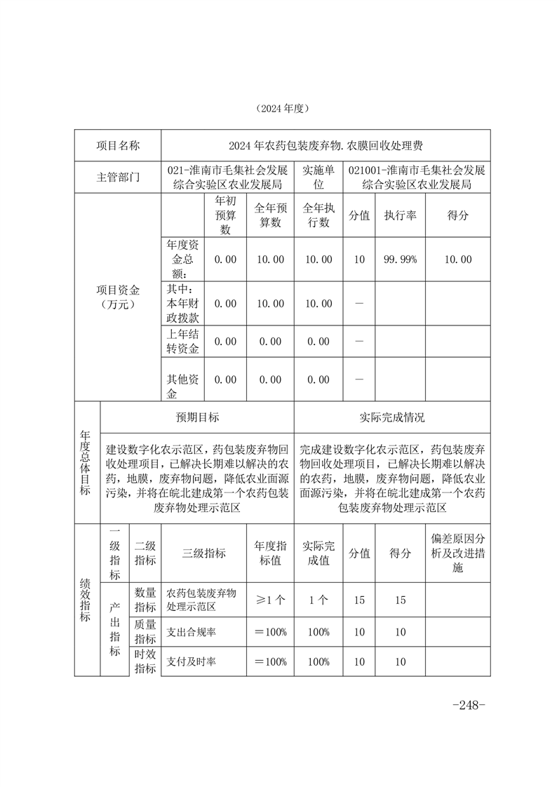 淮南市毛集社会发展综合实验区农业发展局2024年度部门决算