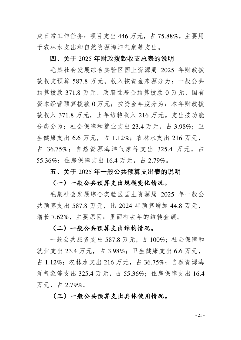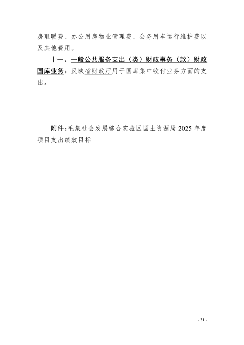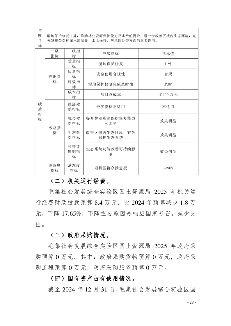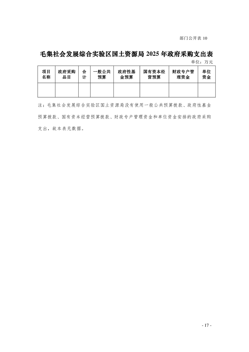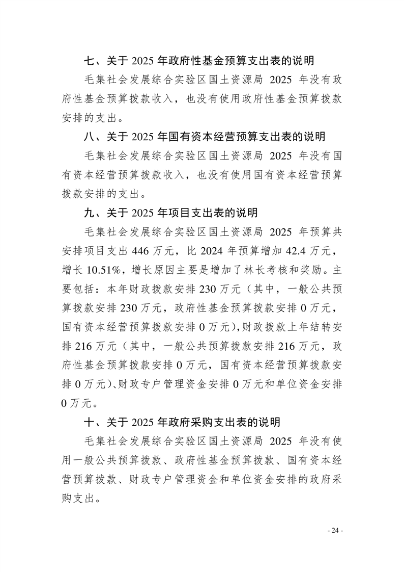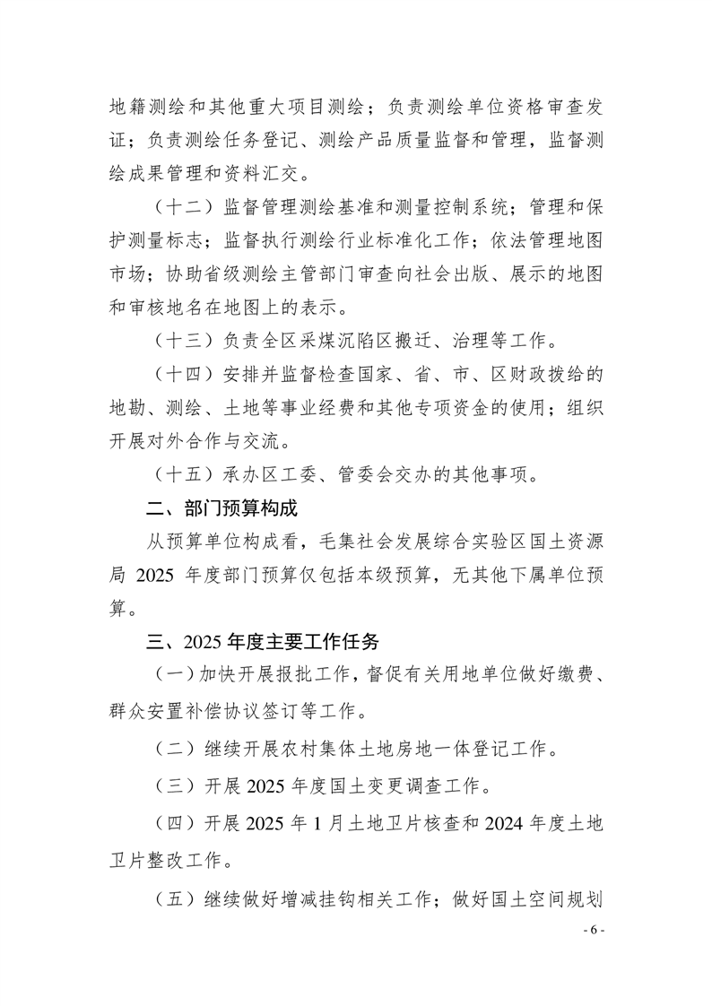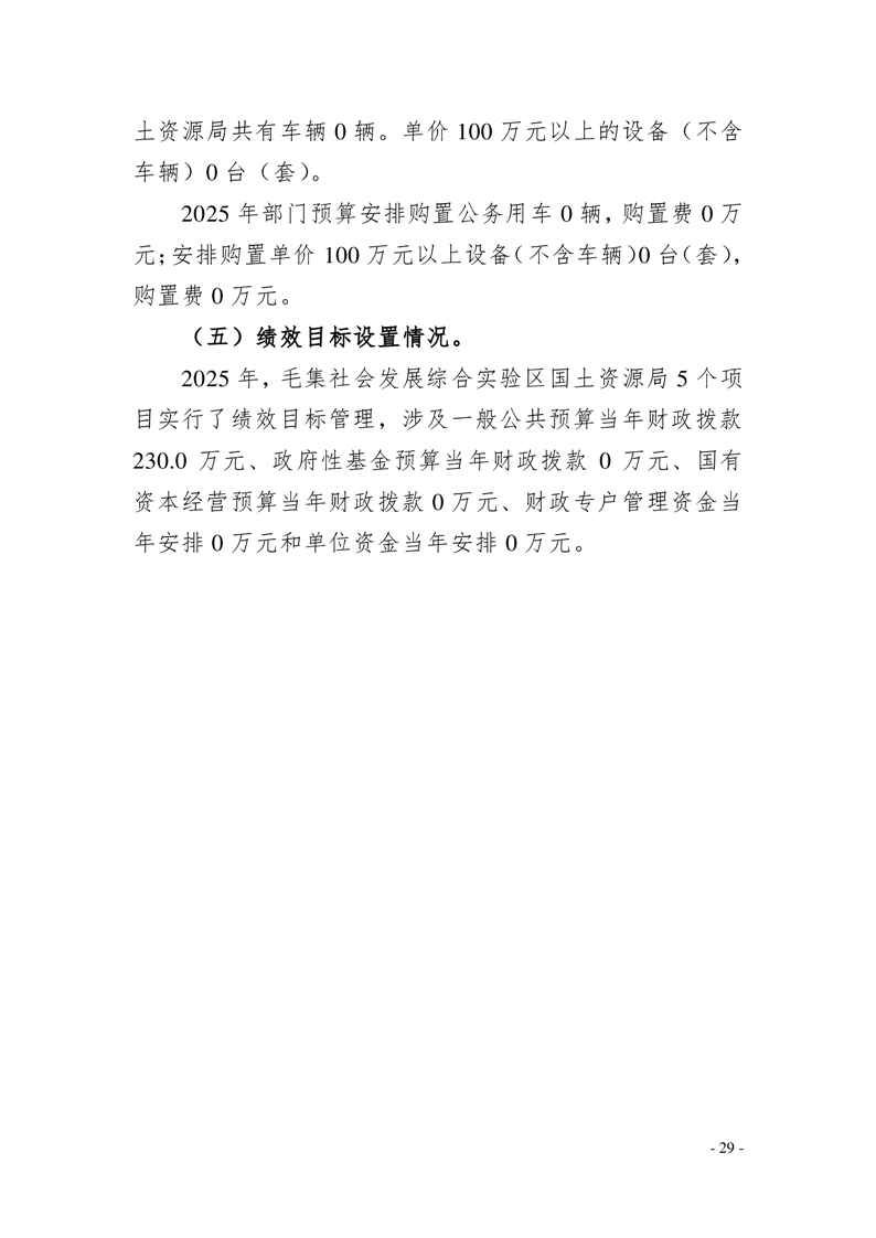 毛集社会发展综合实验区国土资源局2025年部门预算