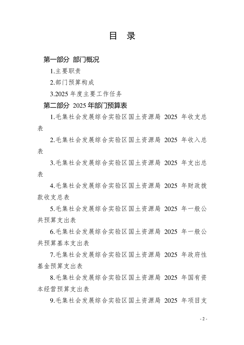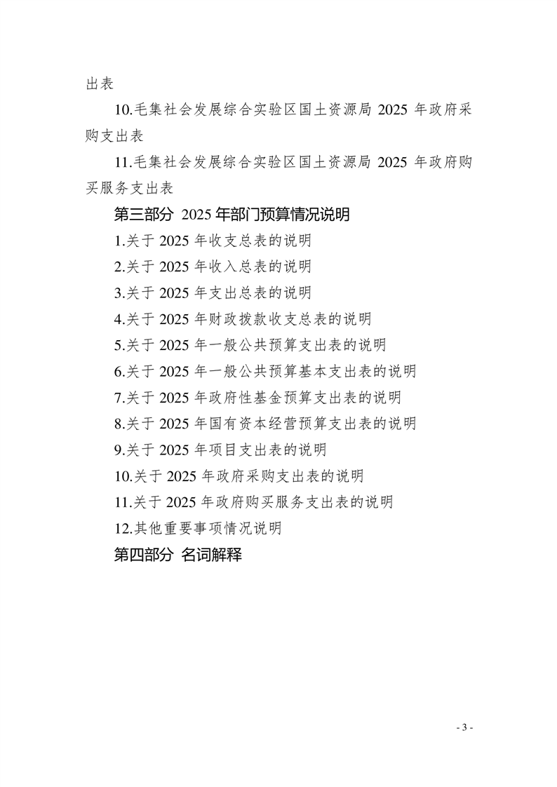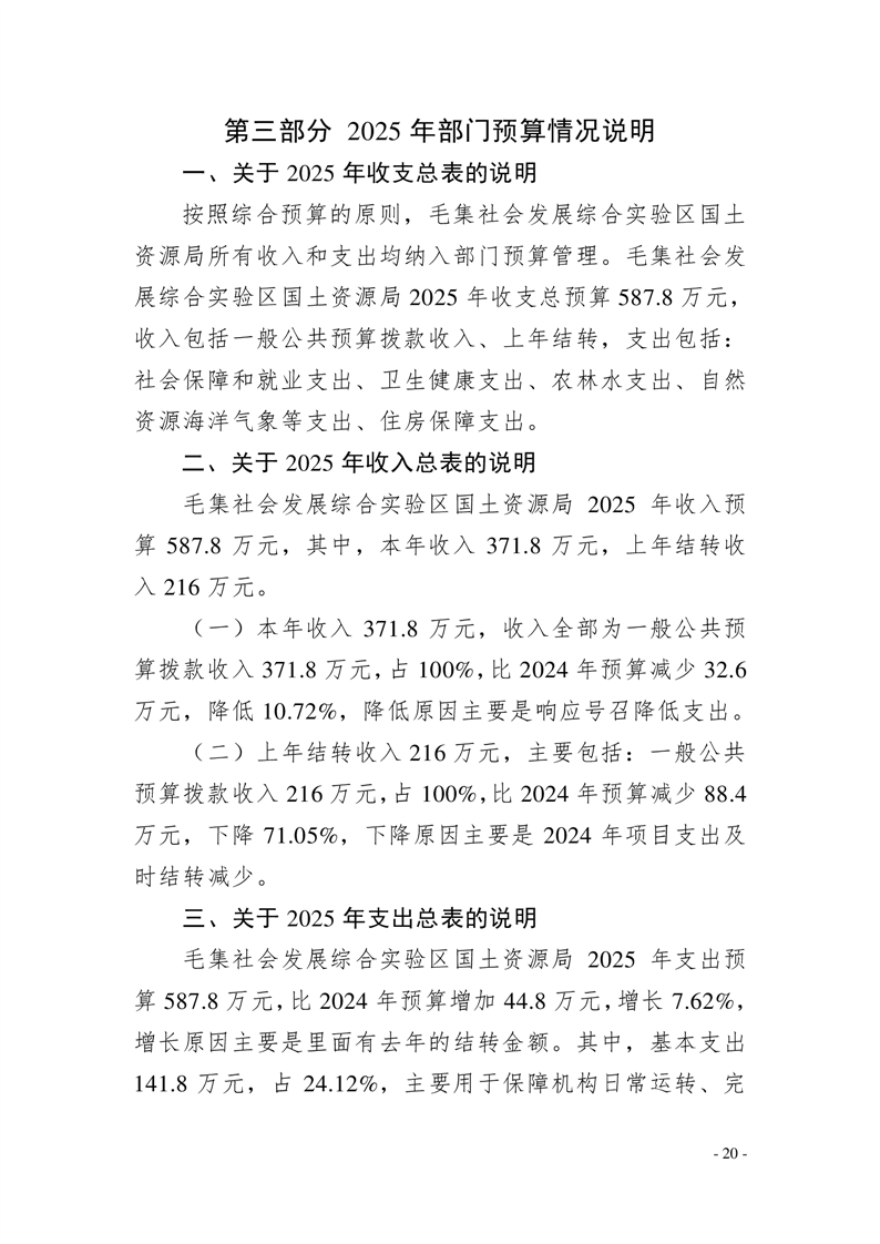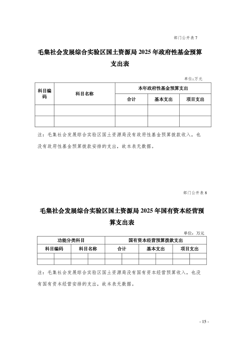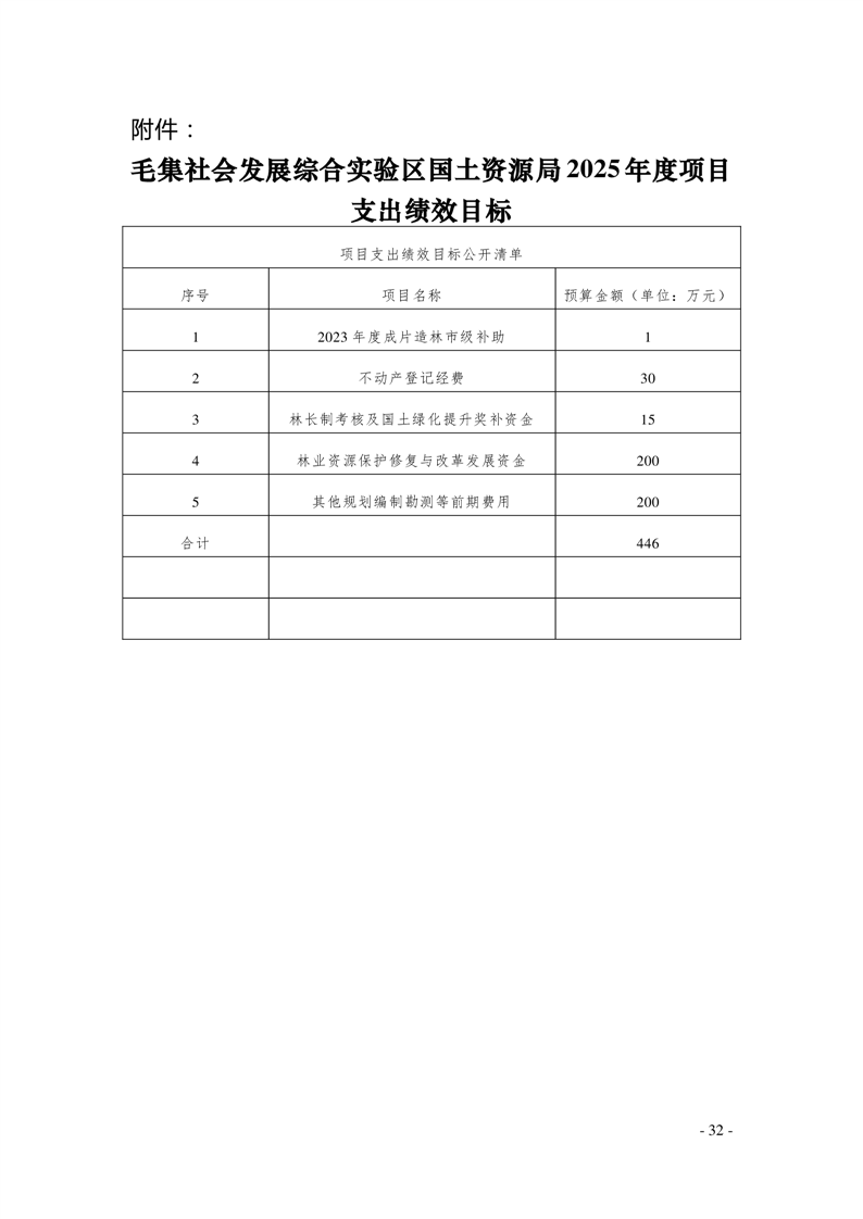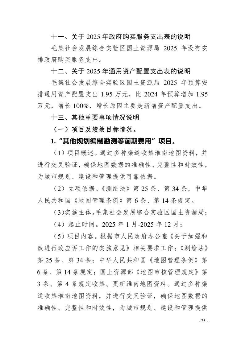 毛集社会发展综合实验区国土资源局2025年部门预算