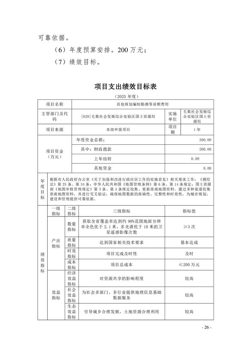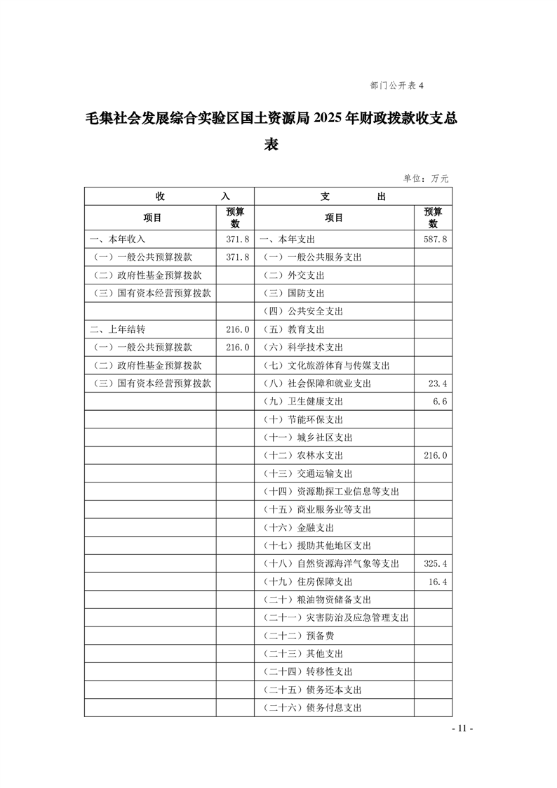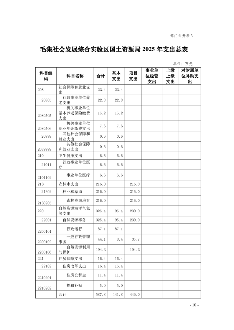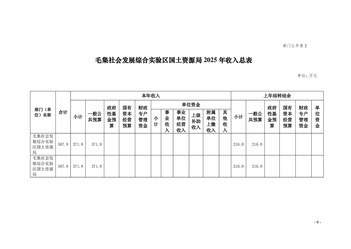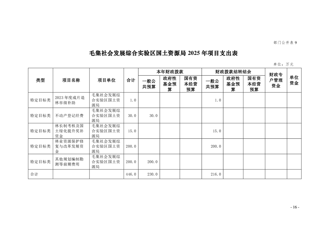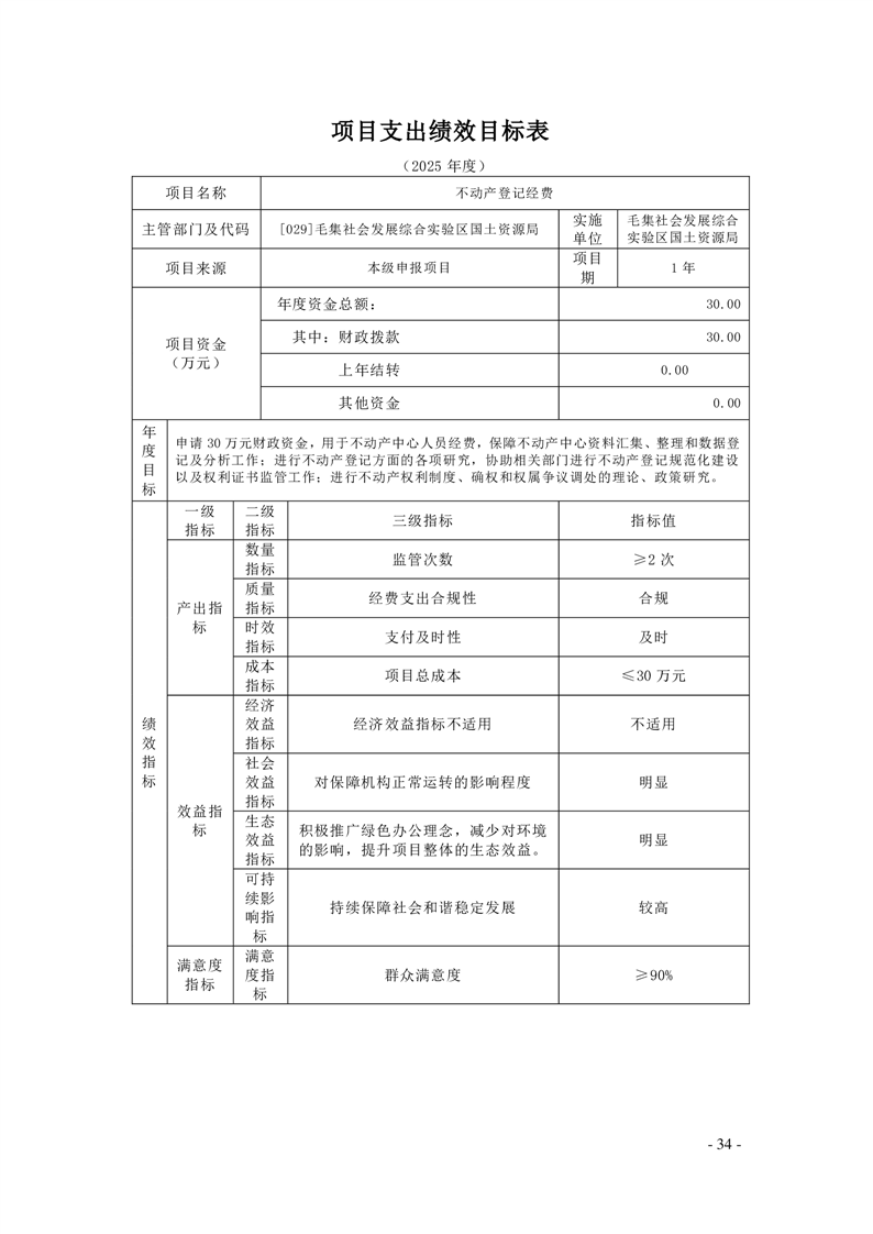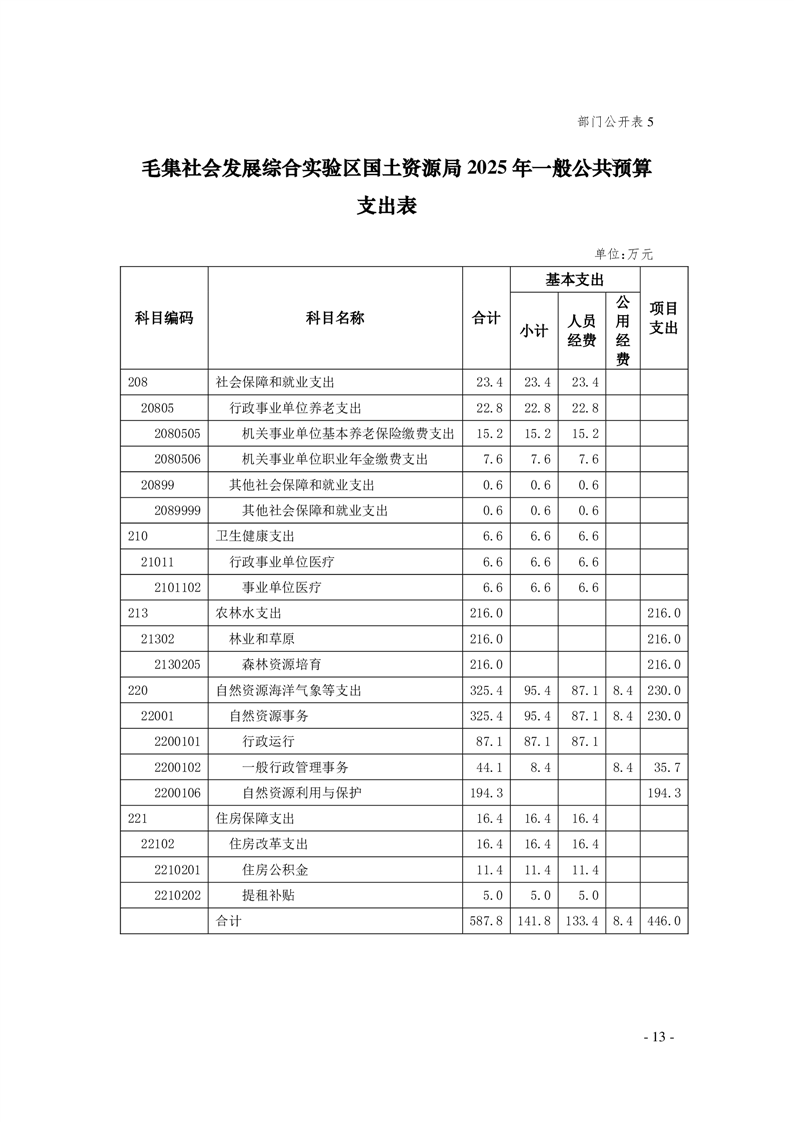 毛集社会发展综合实验区国土资源局2025年部门预算