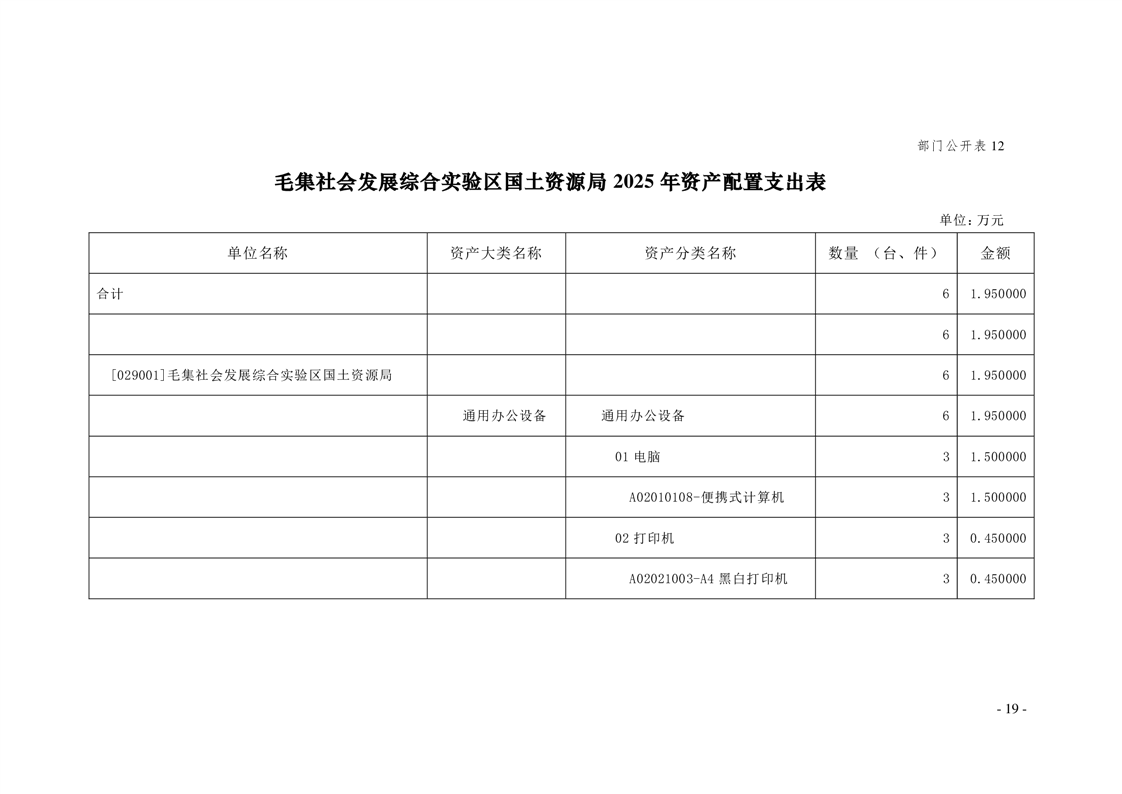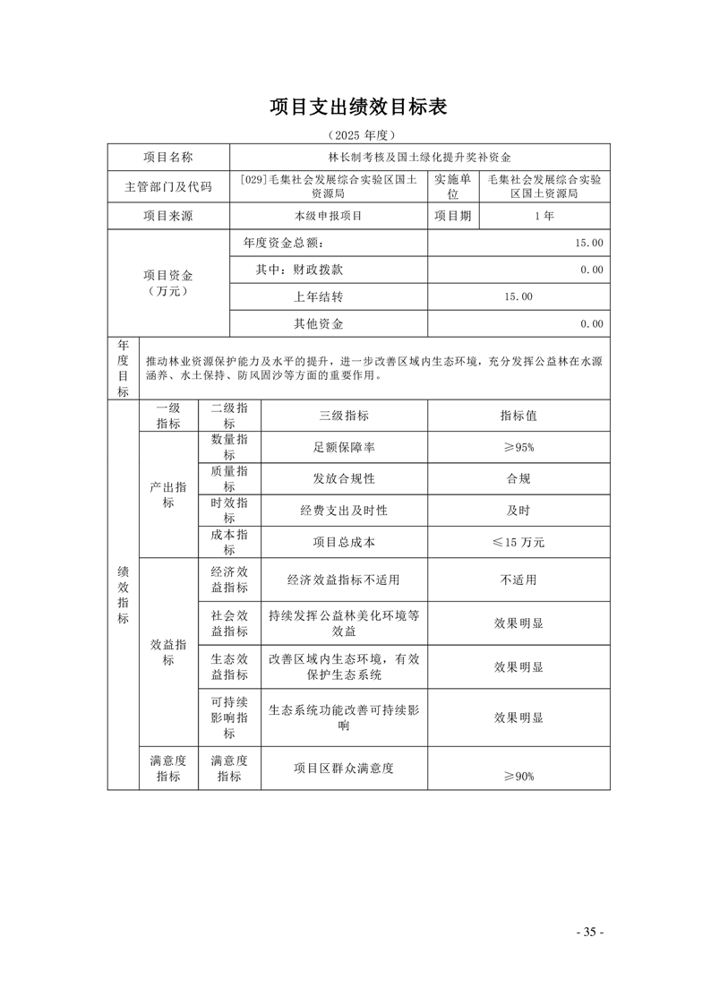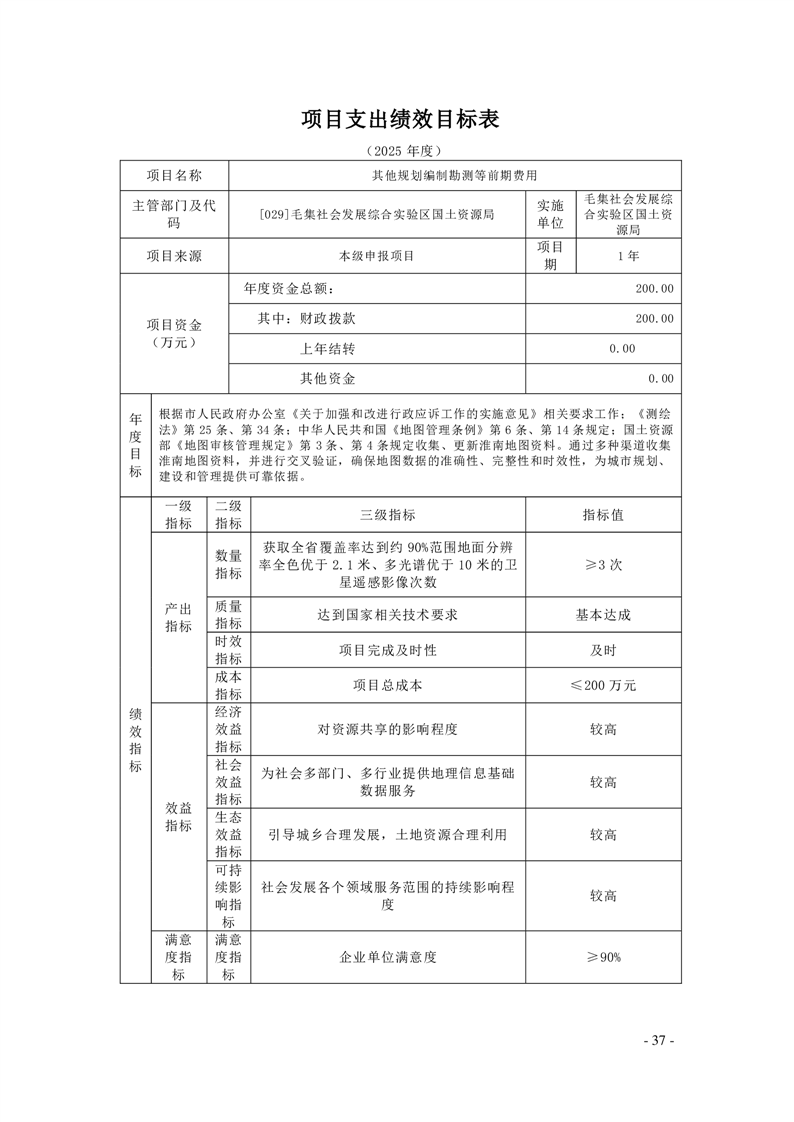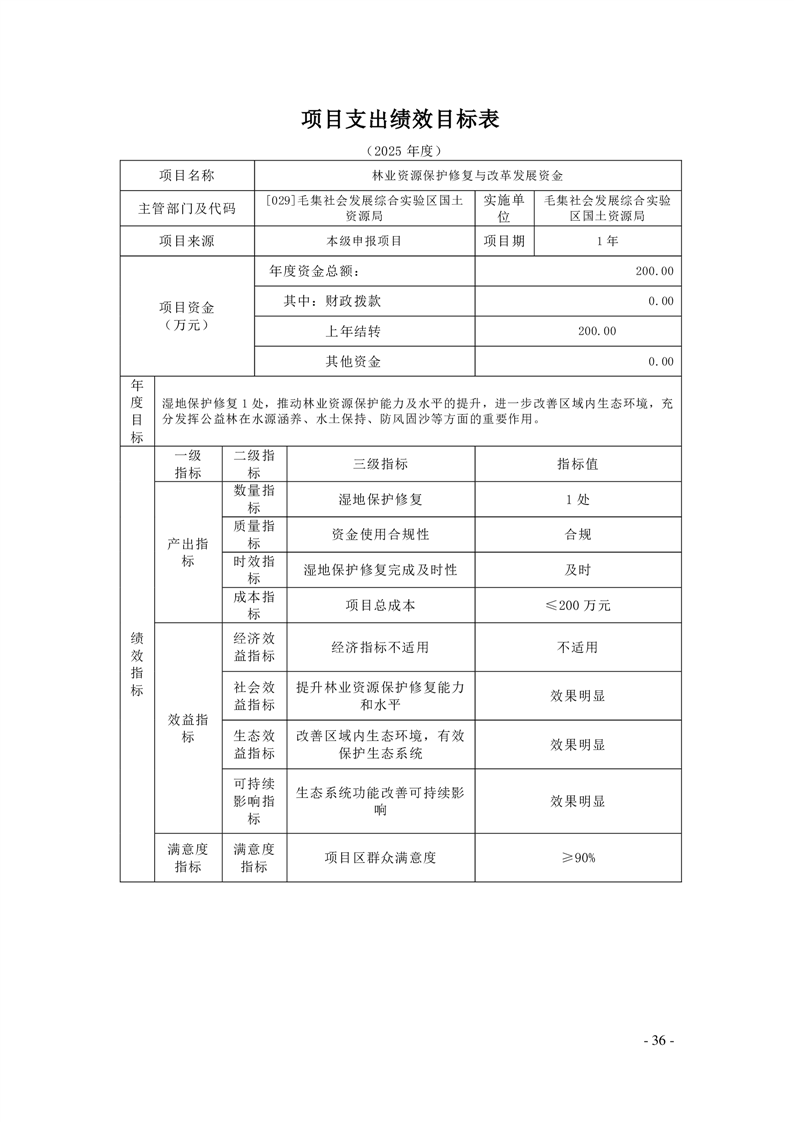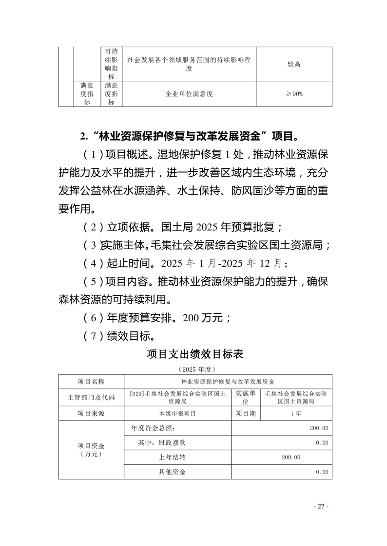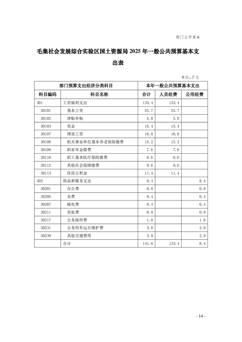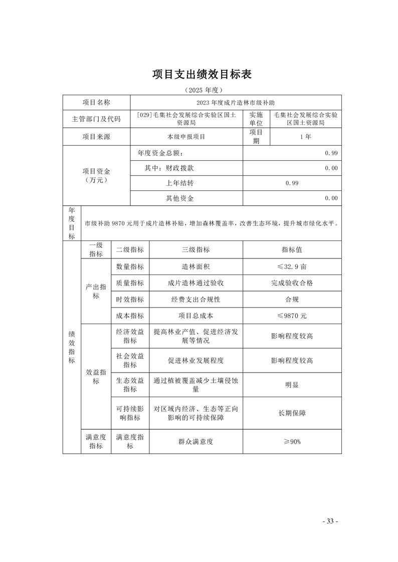 毛集社会发展综合实验区国土资源局2025年部门预算
