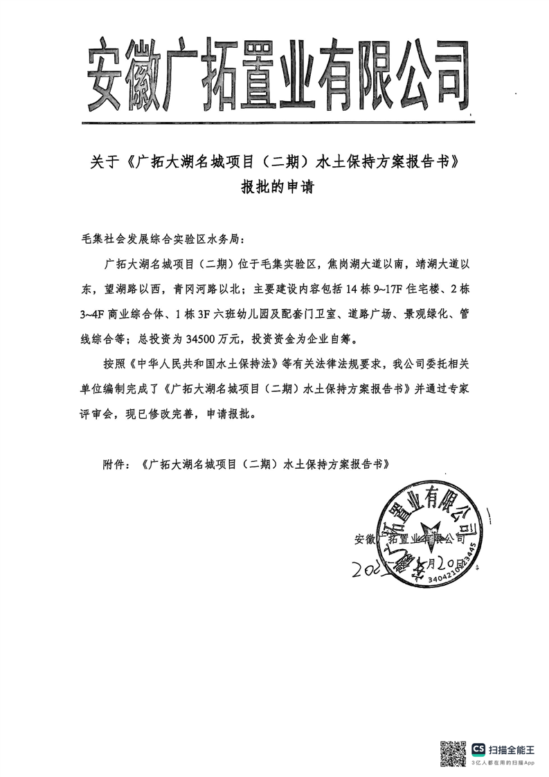安徽广拓置业有限公司大湖名城项目(二期)