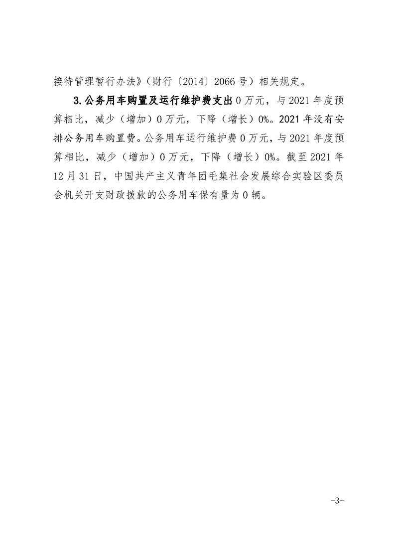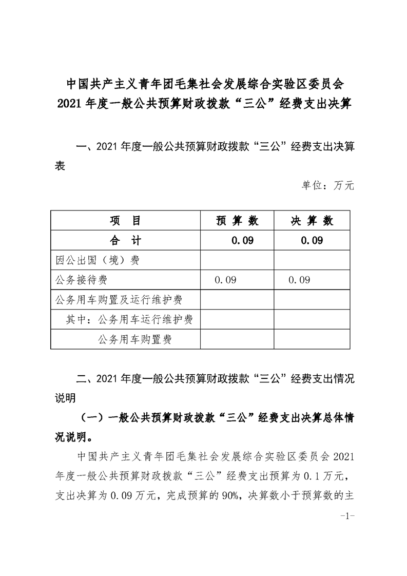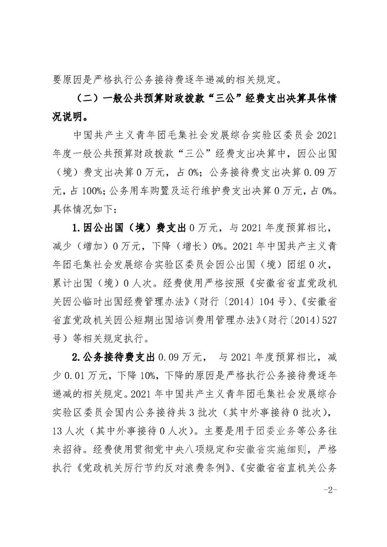 中国共产主义青年团毛集社会发展综合实验区委员会2021年度一般公共预算财政拨款“三公”经费支出决算