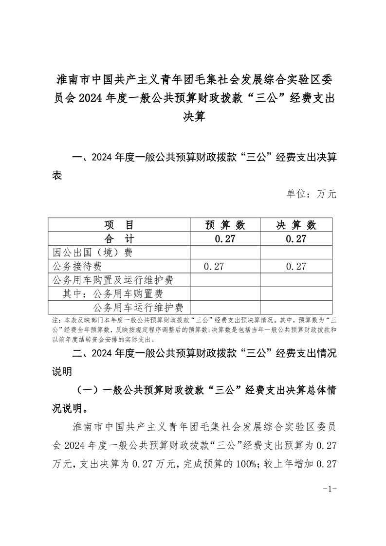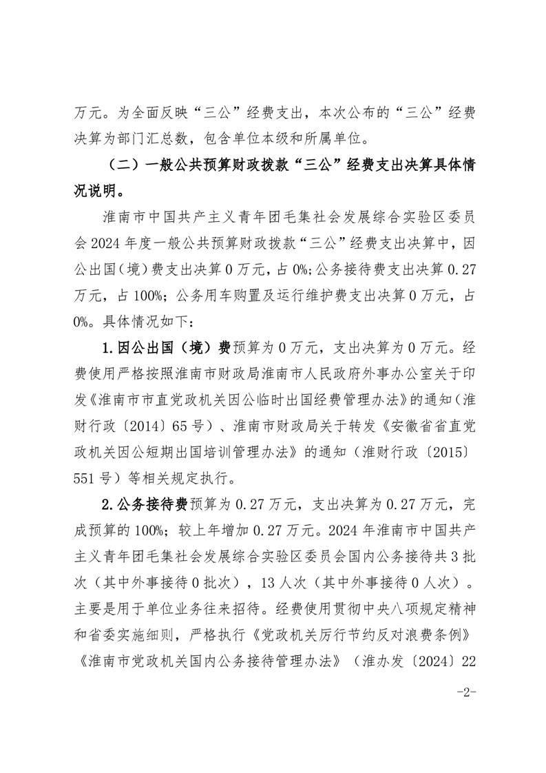 淮南市中国共产主义青年团毛集社会发展综合实验区委员会2024年度一般公共预算财政拨款“三公”经费支出决算