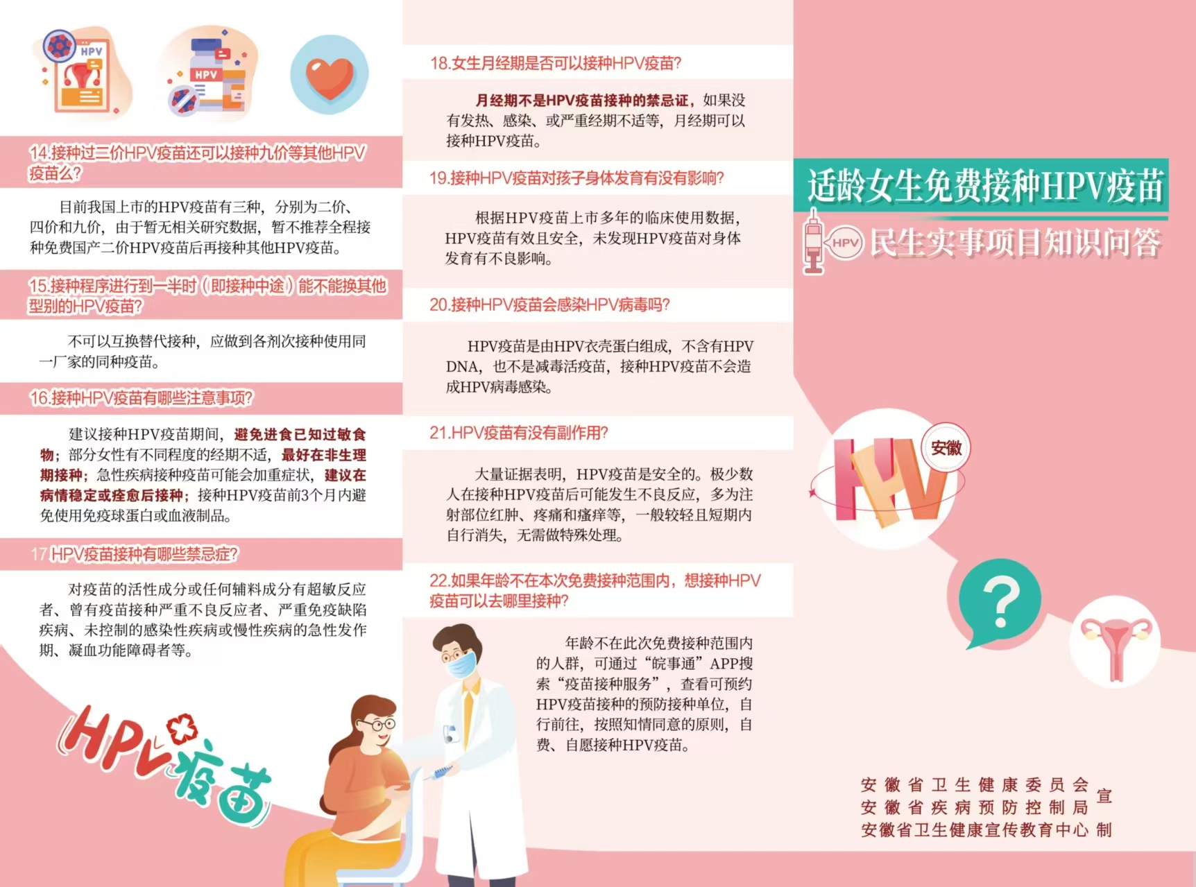 关于适龄女生免费接种HPV疫苗的民生知识问答