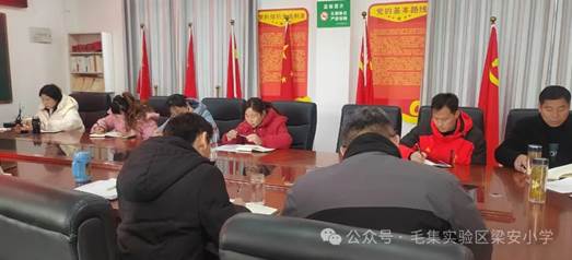 会议由学校党支部书记、校长刘庆喜主持,刘书记(校长)首先回顾了上一年党建及学校工作,然后就2025年梁安小学党政、学校工作思路作重点介绍。随后,学校党支部、教务处、总务处、德育处、办公室负责人分别就新学期本科室工作思路进行交流,大家还从学校发展角度出发,对学校的校务管理、特色创建、教师研训以及重点活动的开展进行了热烈讨论,梁安小学新学期的工作蓝图逐渐清晰,落实了工作目标,强化了工作责任,理清了实施步骤,规范了工作方法。