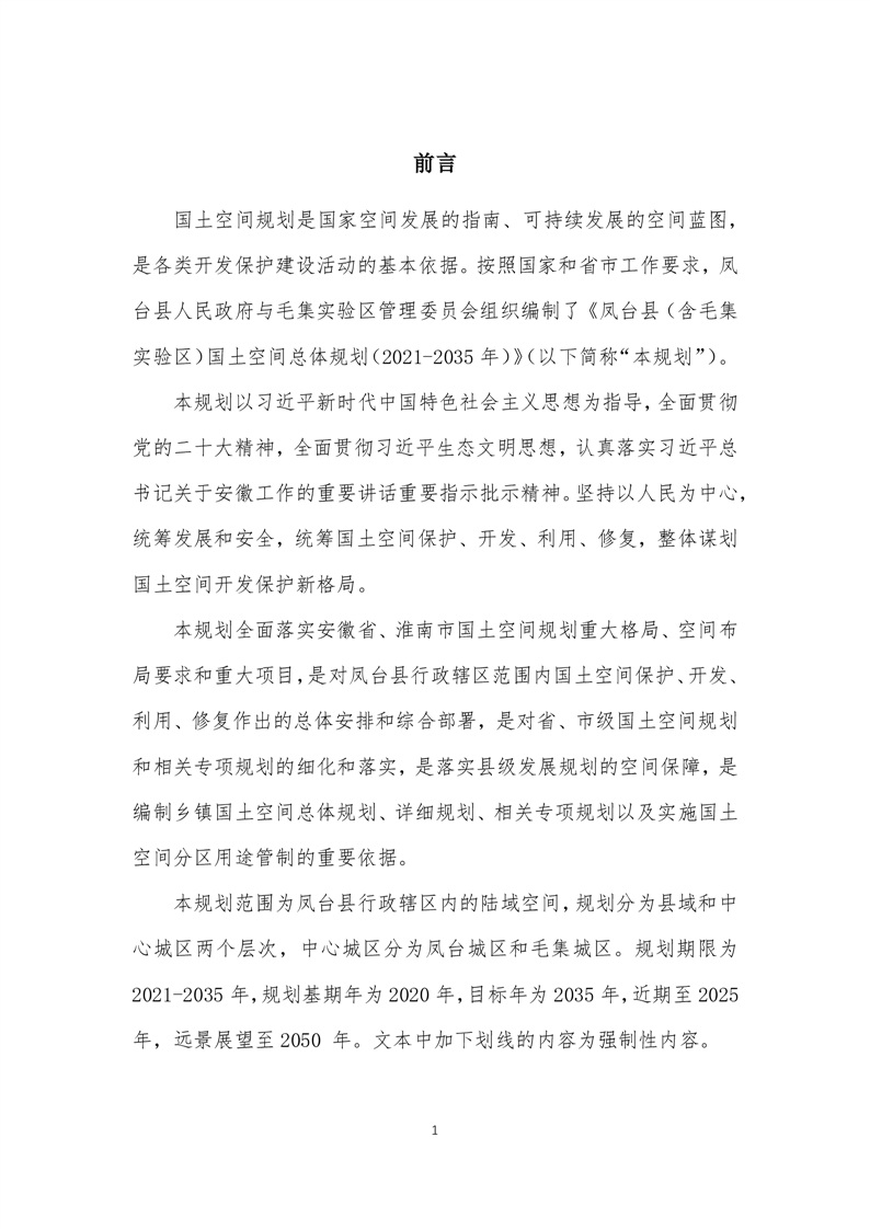 毛集实验区国土空间总体规划(2021-2035年)批后公开