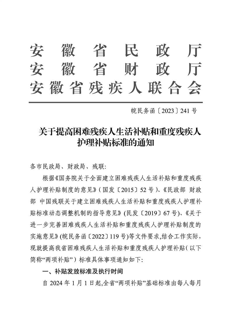 【救助标准】困难残疾人生活补贴和重度残疾人护理补贴(2024年)